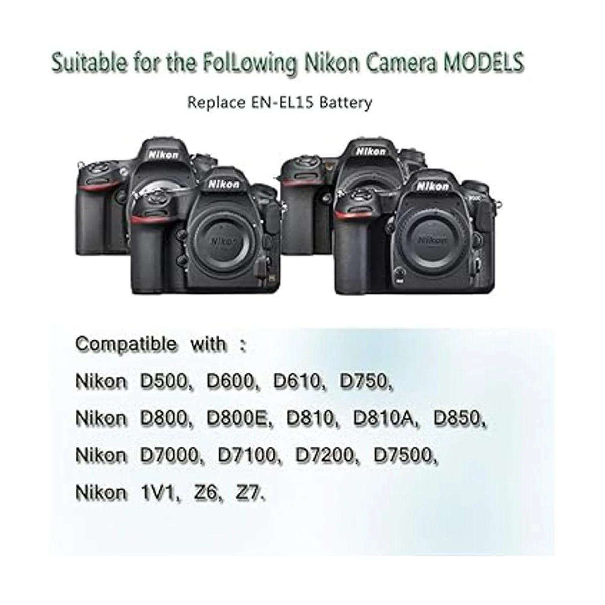 Modelos de compatibilidad: el adaptador de CA Gonine EP 5B kti se adapta a Nikon Coolpix Z6, Z7, D500, D600, D610, D750, D7000, D7100, D7200, D800, D850, D800E, D810, D810A, 10A Cámaras V1.