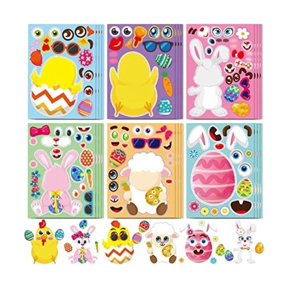 GonLei 24 hojas de calcomanías faciales para niños de Pascua, 6 estilos, conejito de Pascua, ovejas de huevo de colores, manualidades, fiestas, regalos para fiestas, fiestas, regalos de Pascua, juegos para niños, regalos de juguete