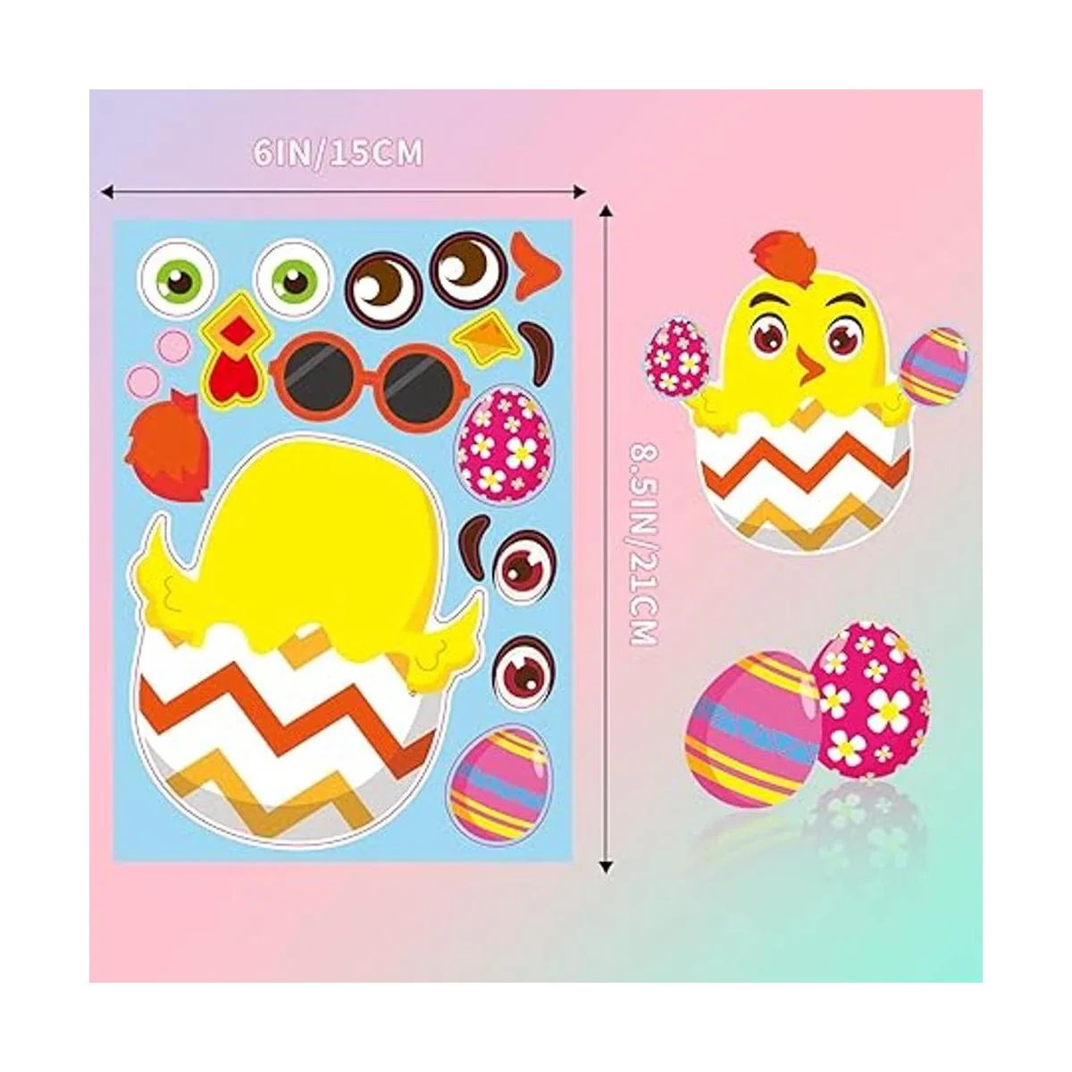 6 estilos: 24 pegatinas de cara de Pascua, incluyendo 6 estilos, cuatro cada uno. Cada tamaño es de 8.2 x 5.9 pulgadas. Seis estilos incluyen conejo de Pascua, ovejas, huevos de colores, pollos, etc. Se pueden hacer diferentes estilos. Relación calidadprecio.