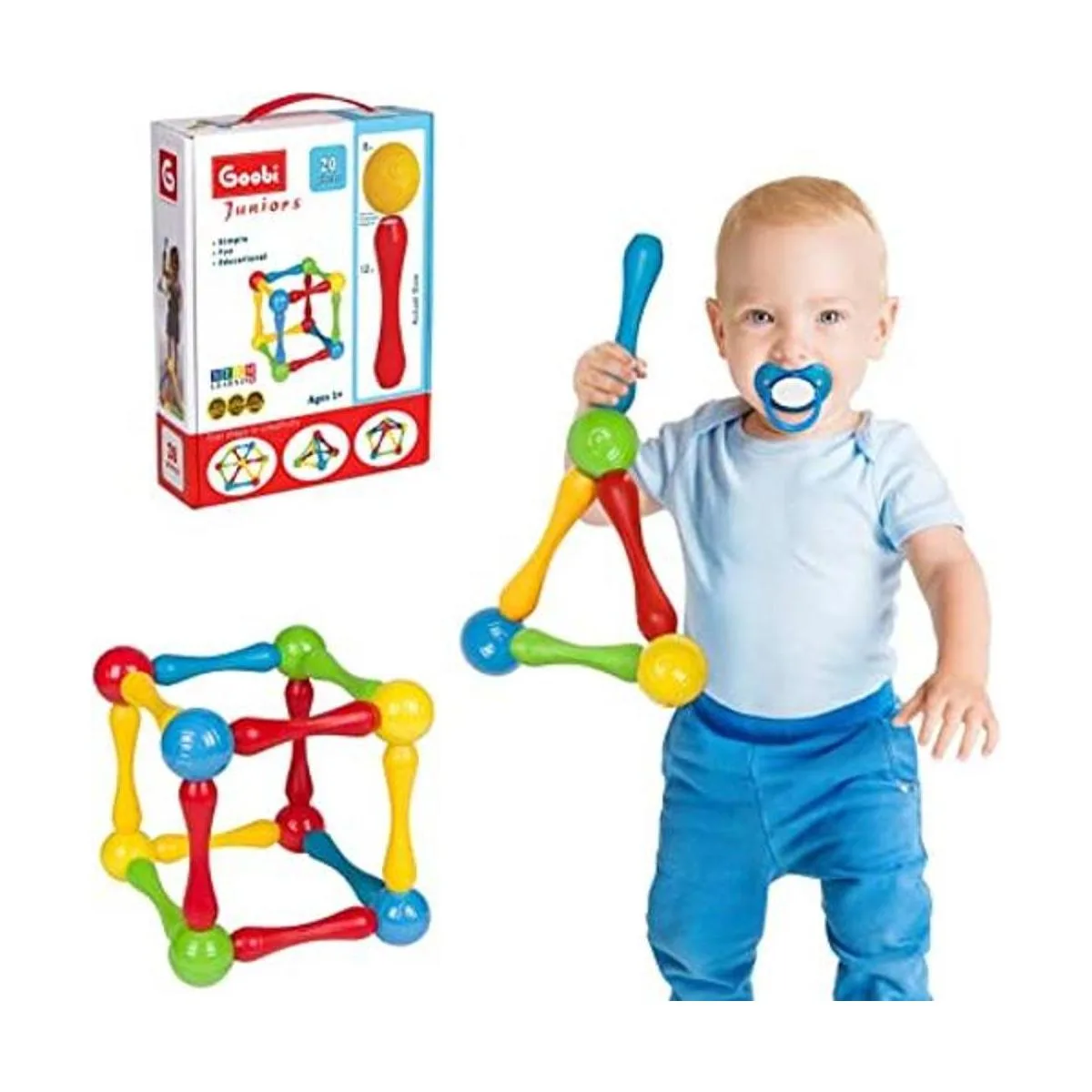 Goobi Juego de construcción de 20 piezas de bloques de construcción grandes, palos de juego para el desarrollo, aprendizaje STEM de colores vibrantes, creatividad, imaginación, rompecabezas 3D, juguetes educativos para niños de 1 año preescolar