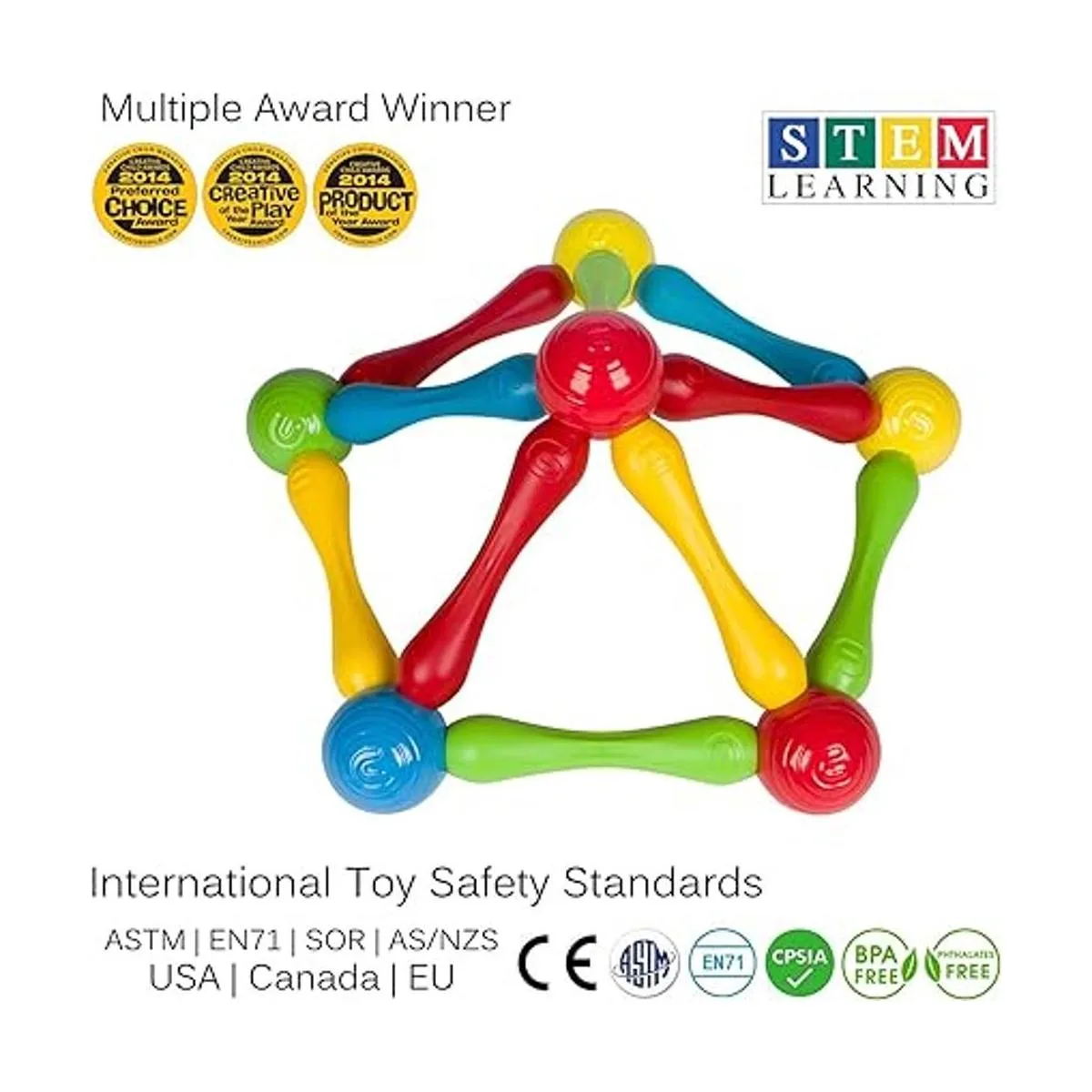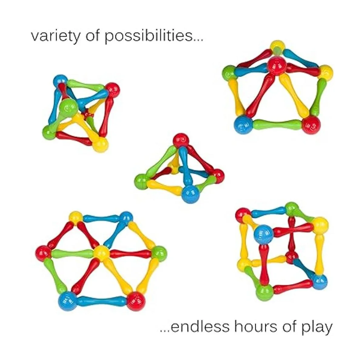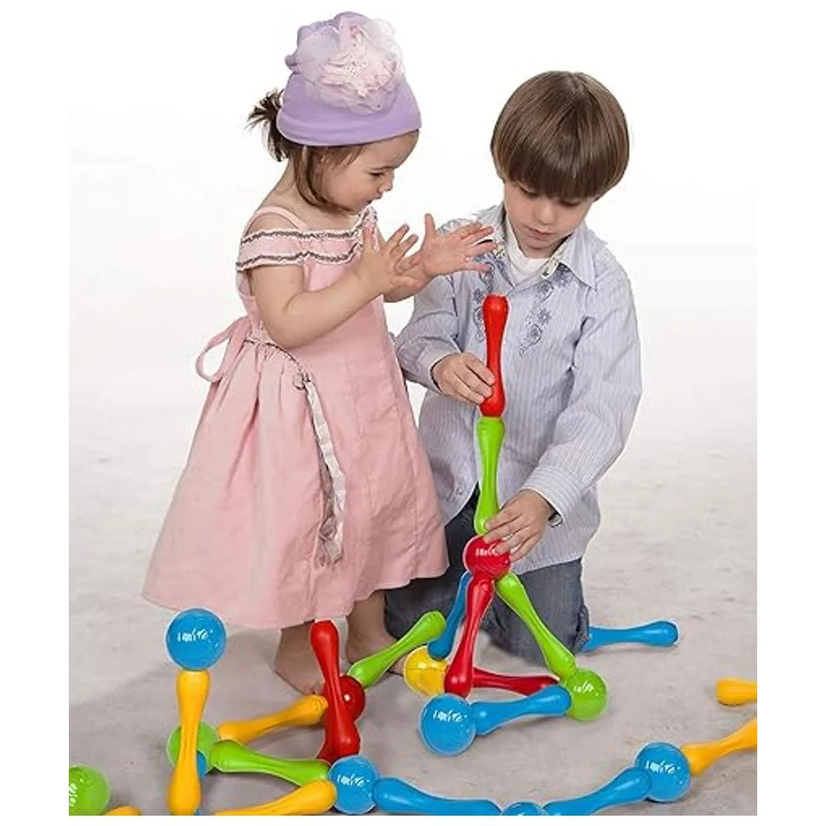 El juego incluye: 20 piezas jumbo, 12 barras 5.7 pulgadas / 5.7 in con fuertes atracciones en cada extremo y 8 bolas de hierro de 2.4 pulgadas / 2.4 in, todas las piezas vienen en colores vibrantes y atractivos: rojo, azul, verde y amarillo