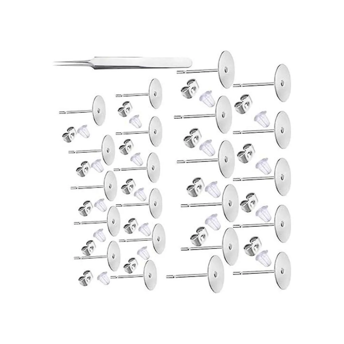 Función: los postes de los pendientes con almohadilla plana te permiten encontrar tus pendientes con algunos diamantes de imitación y cristales planos a través de pegamento líquido caliente, las pinzas te ayudan a hacer manualidades fácilmente