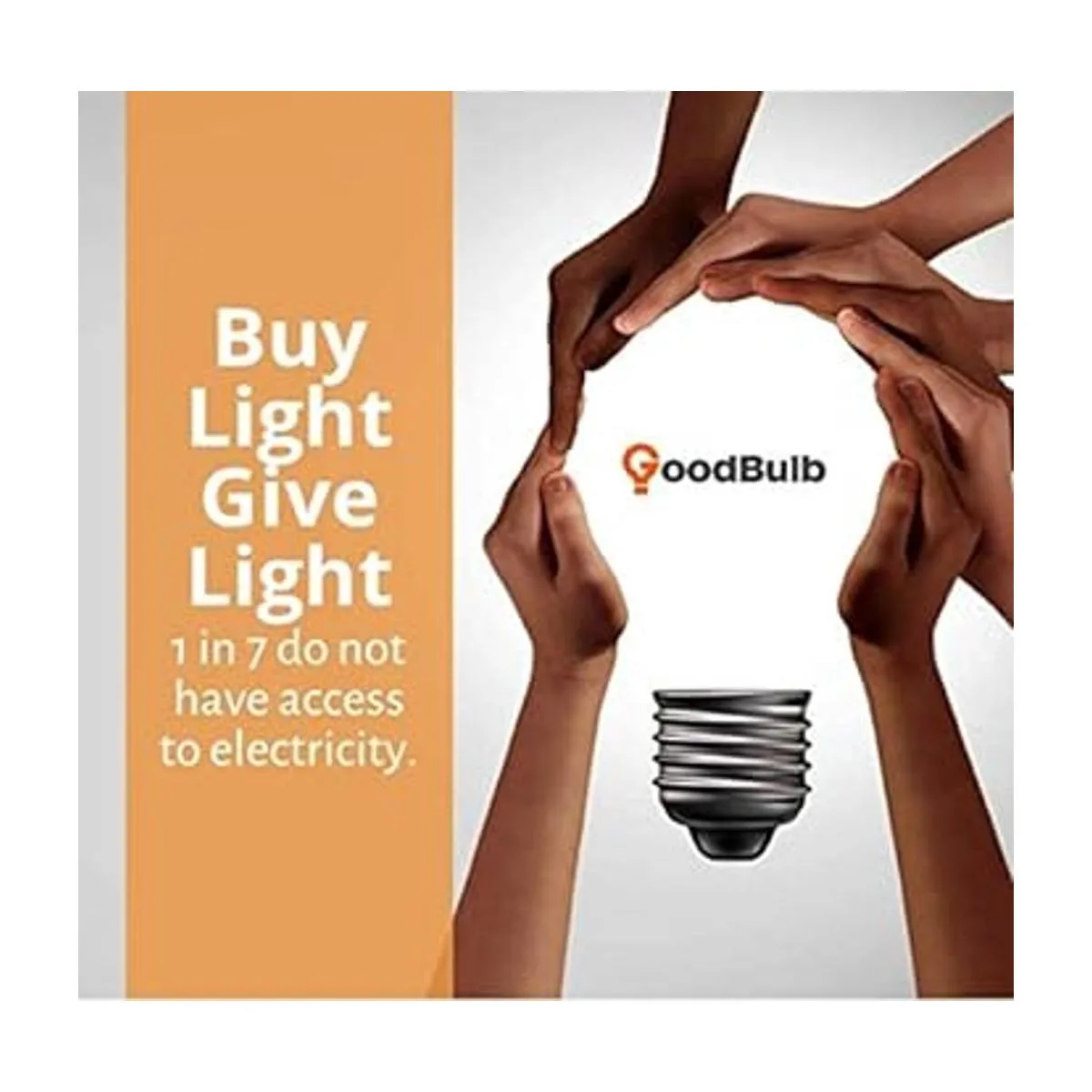 Compra una luz, da una luz: una de cada siete personas en el mundo vive sin electricidad. Una parte de cada compra de GoodBulb se utiliza para proporcionar linternas LED alimentadas por energía solar a familias que viven sin electricidad. Seleccionar GoodBulb es una decisión de ser una luz en la oscuridad. Juntos, podemos marcar la diferencia