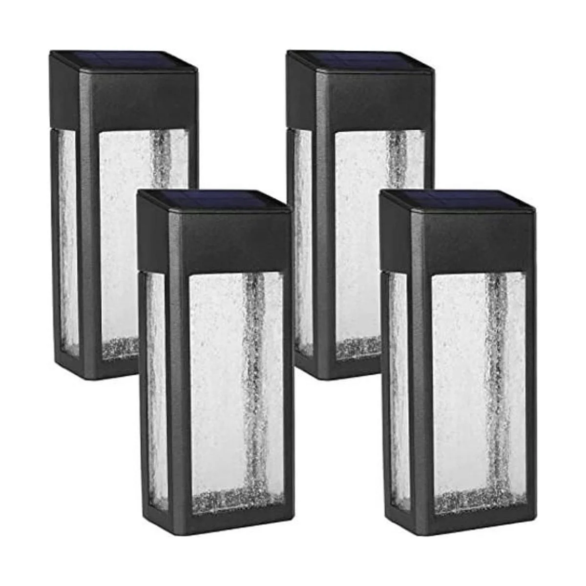 GOODFOEVER Paquete de 4 luces solares para valla solar, luz de pared para exteriores, patio, valla, porche y garaje, cuerpo en aluminio y vidrio, impermeable, iluminación solar decorativa al aire libre