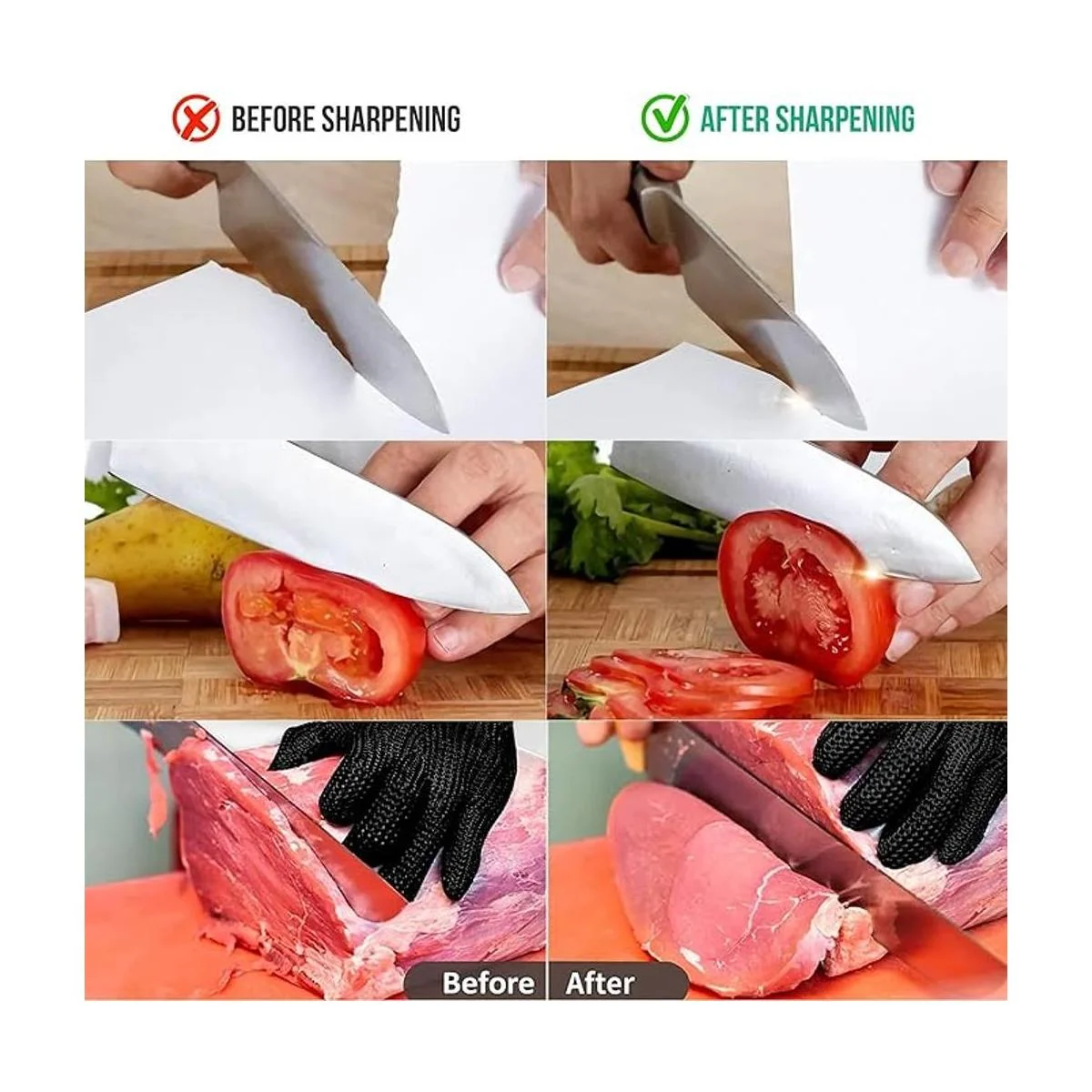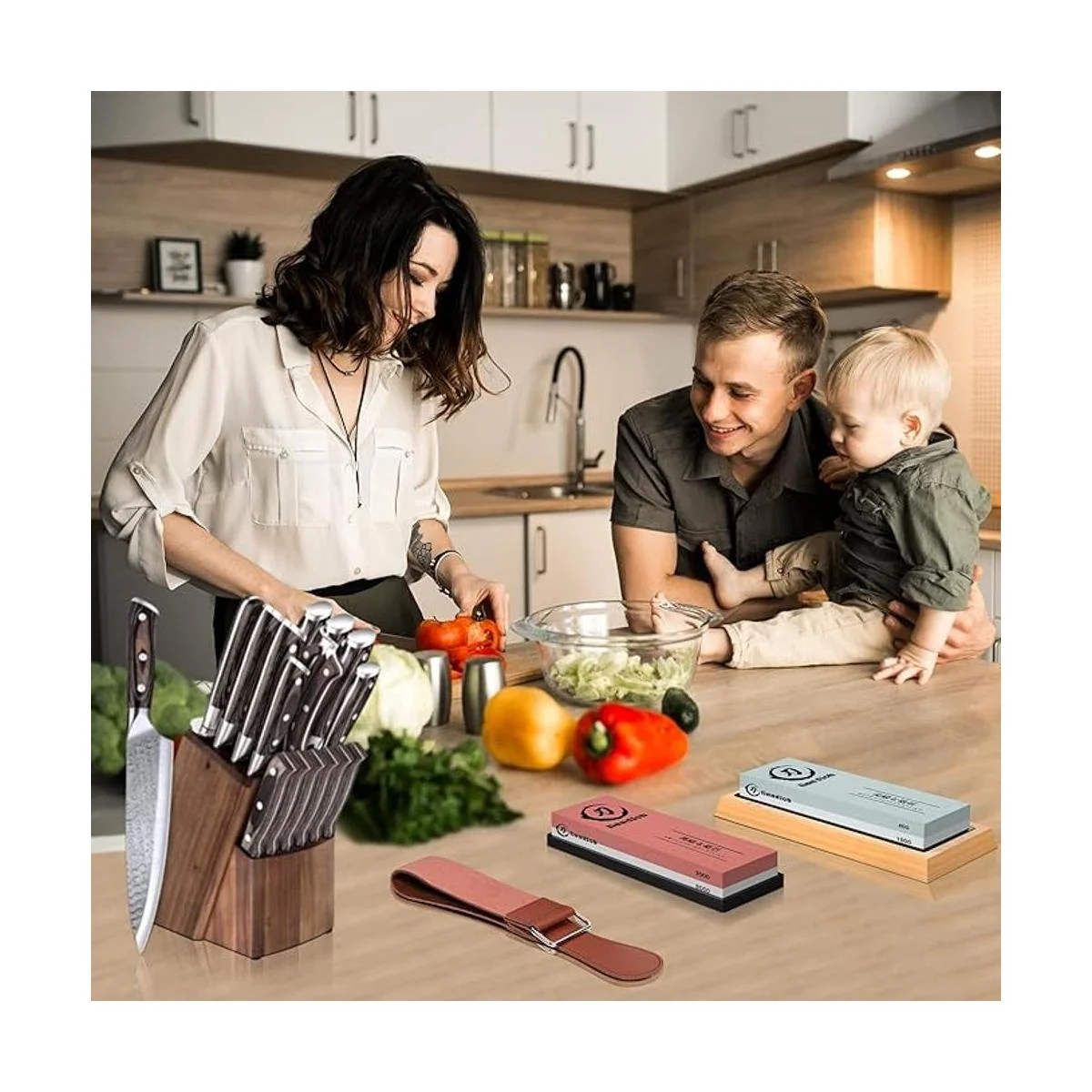 Multiusos: este kit de afilado de piedra de afilar es para juegos de cuchillos de cocina domésticos, cuchillos de chef profesional, tijeras, cincel y hachas u otras herramientas que requieren afilado; úsalo solo una vez para una nitidez duradera.