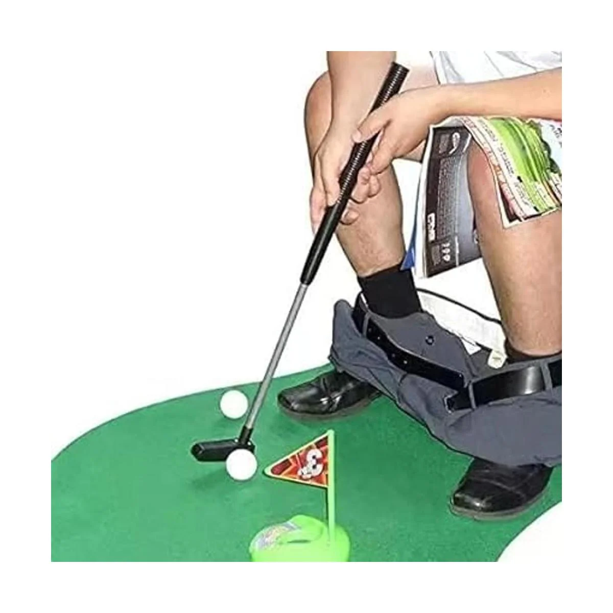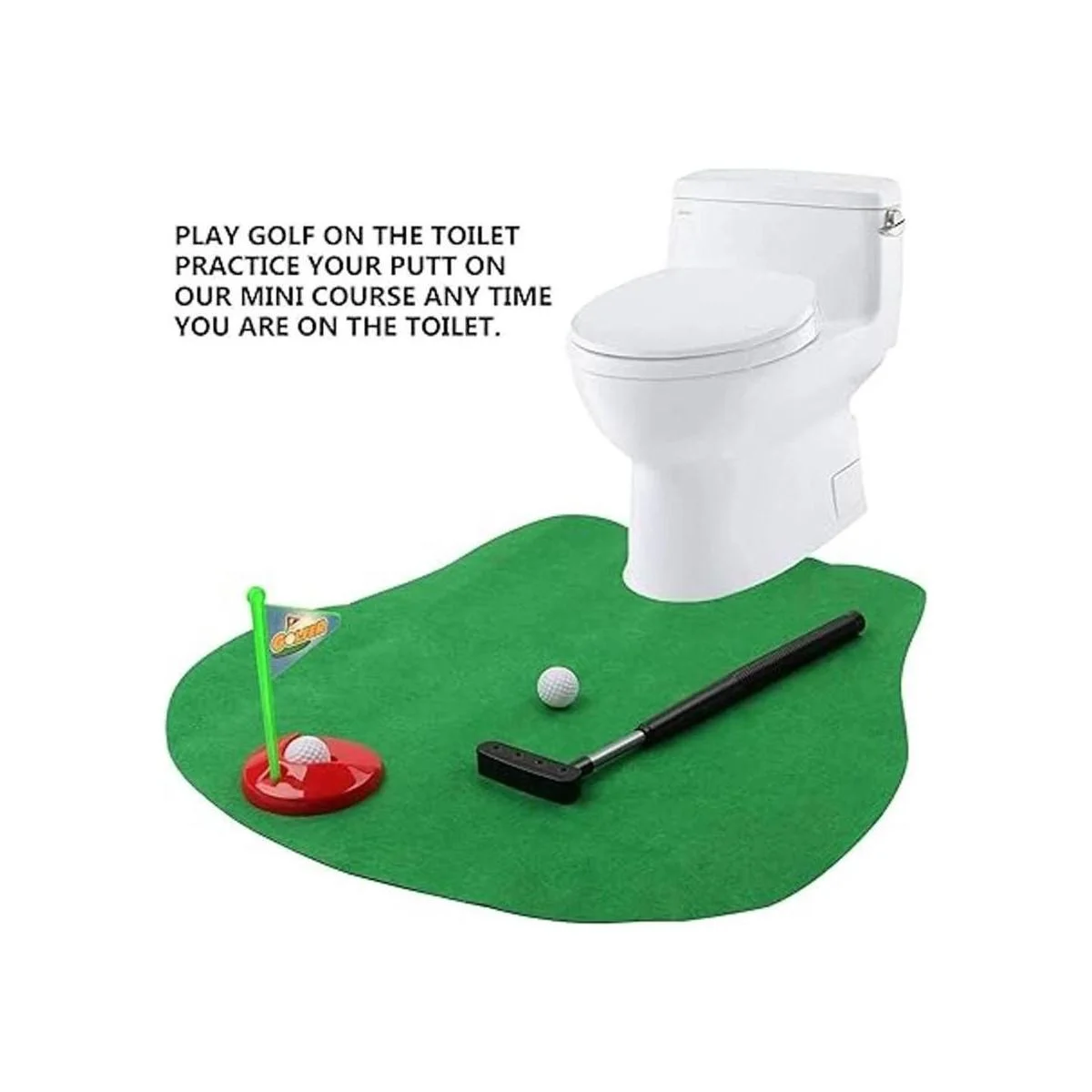 GOODLYSPORTS Juego de golf para inodoro práctica mini golf en cualquier baño o baño, gran hora de inodoro, divertidos regalos de mordaza de elefante blanco para golfista.