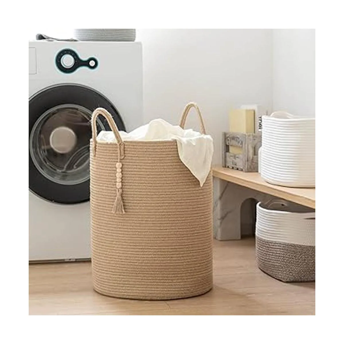 Goodpick Cesta alta de mimbre para lavandería con asas, canasta de almacenamiento decorativa bohemia para sala de estar, dormitorio, entrada, baño, canasta de manta tejida grande para almohadas, toallas, zapatos, yute, 16 x 20 pulgadas