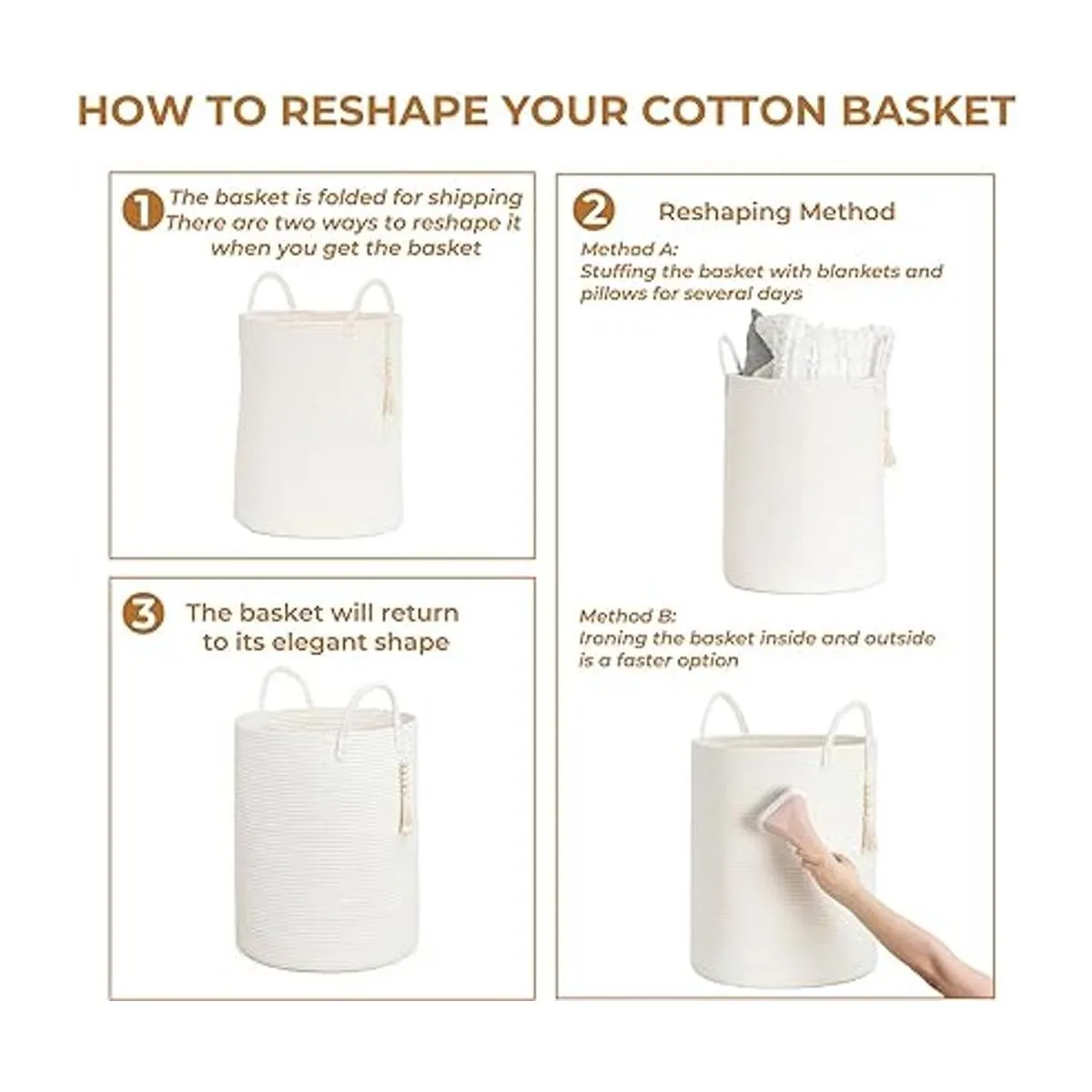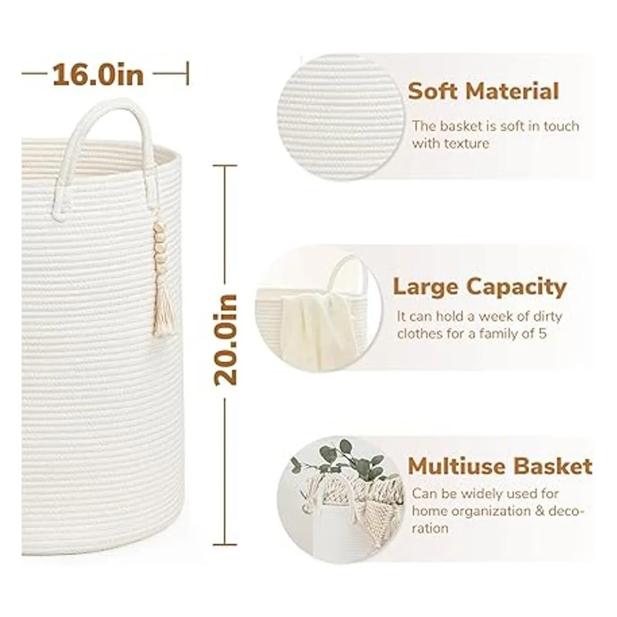 Atractivas soluciones de organización. Esta cesta tejida mide 16 x 20 pulgadas y tiene una capacidad lo suficientemente grande para todas tus necesidades diarias. Se puede utilizar para almacenar ropa, toallas, mantas, juguetes, productos para bebés y mucho más. Hace que sea fácil organizar el espacio y mantener el hogar ordenado