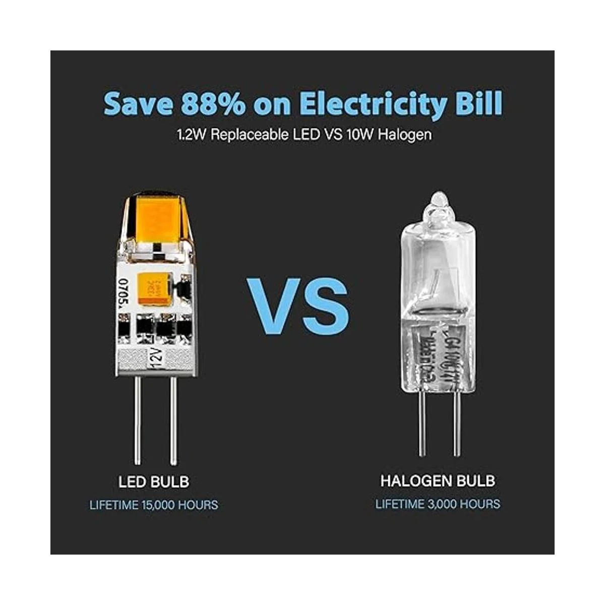 Bombilla reemplazable: la bombilla LED G4 incluida tiene alta eficiencia y tiene una larga vida útil. La bombilla LED reemplazable de 1,2 W produce 40 lúmenes 2700 K en salida de iluminación, ilumina cálidamente las carreteras, calzadas, etc