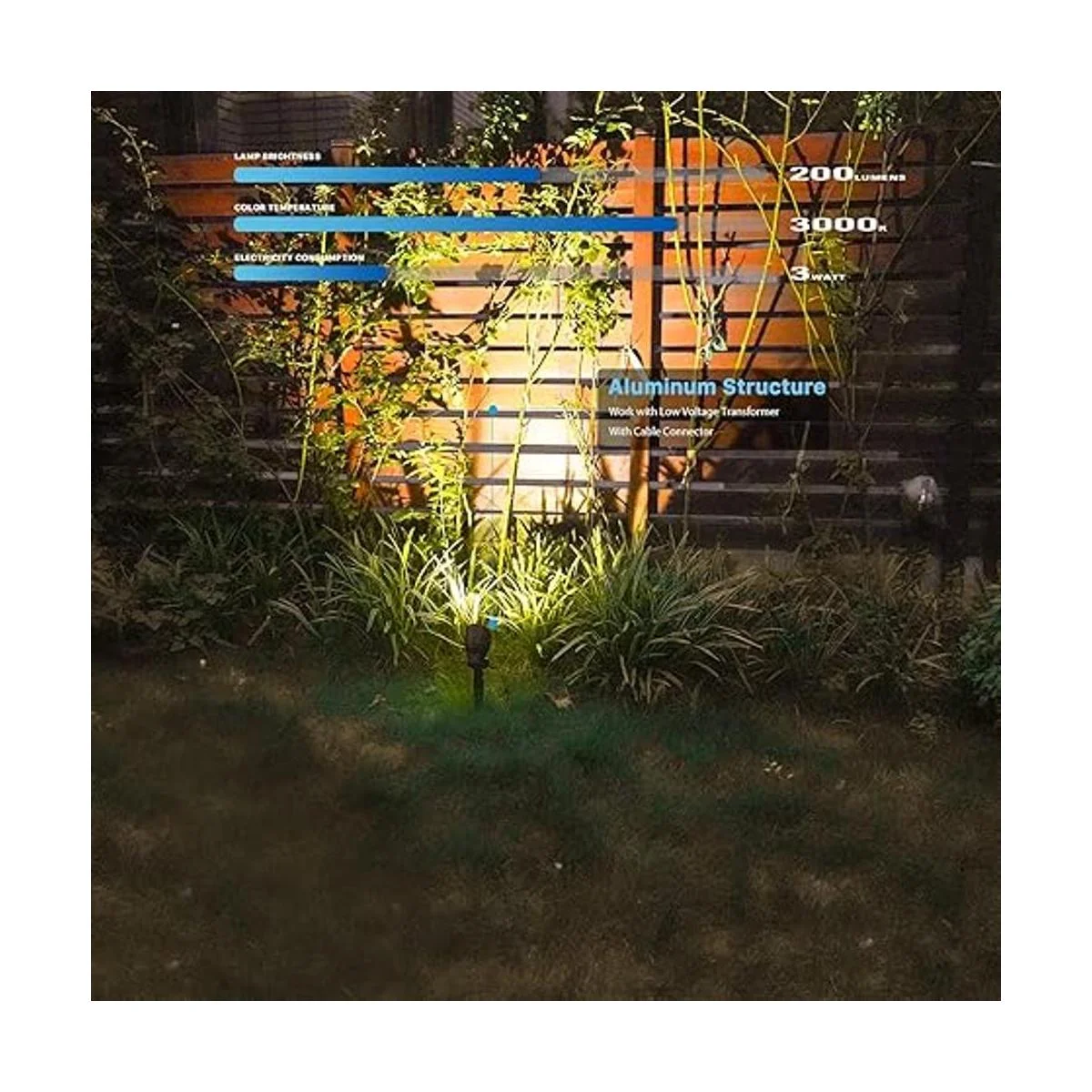 1 reflector de paisaje de 12 V CA: incluye 1 paquete de luz LED de paisaje de 3 W. Este reflector de bajo voltaje de 3 vatios viene con una bombilla MR11 reemplazable, posee un brillo de 200 lúmenes. Apaga una bonita iluminación brillante y suave, proporcionando una hermosa luz para tu hogar