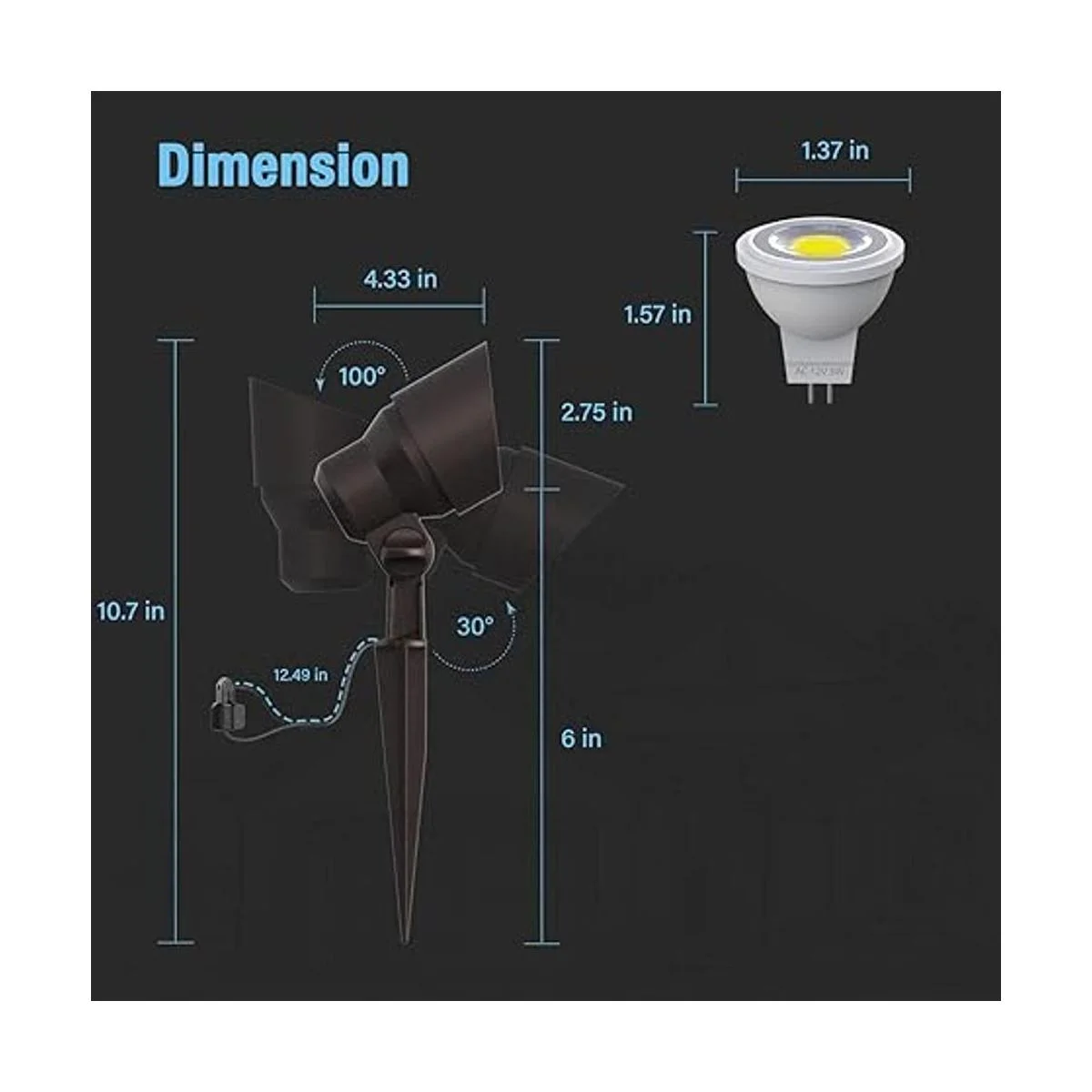 Bombilla LED MR11 reemplazable: esta luz de paisaje de bajo voltaje viene con una bombilla LED reemplazable MR11 de 3 W, sin necesidad de reemplazar todo el accesorio. El LED de 3 vatios proporciona un brillo de 200 lúmenes con blanco cálido suave de 3000 K