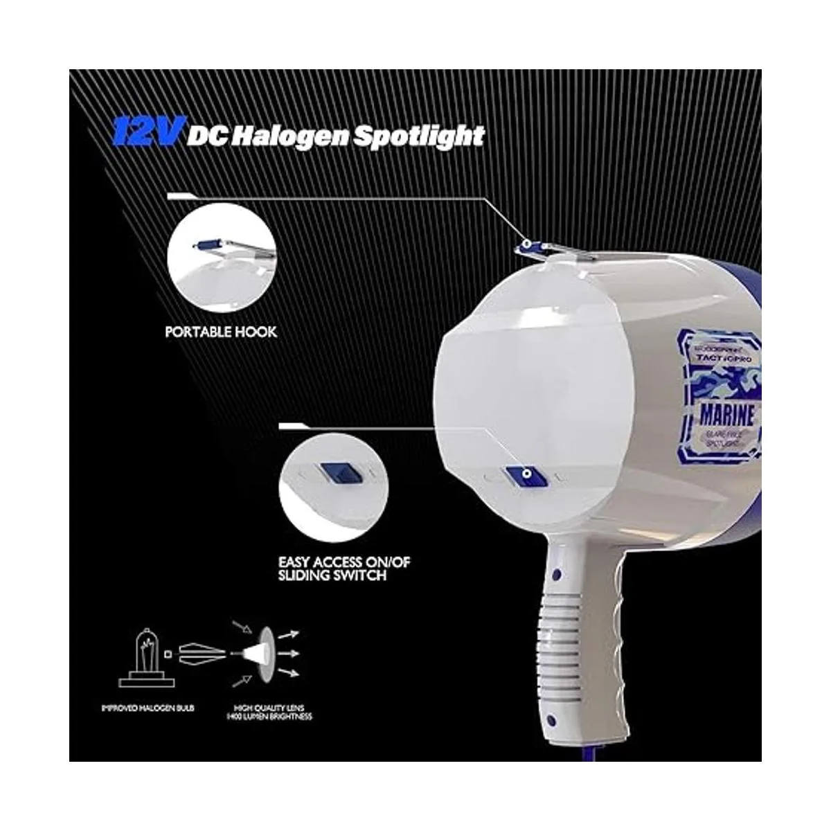 GOODSMANN Marine Spotlight 9924H20201 Foco halógeno de mano con cable para barcos de 12 voltios CC sin deslumbramiento