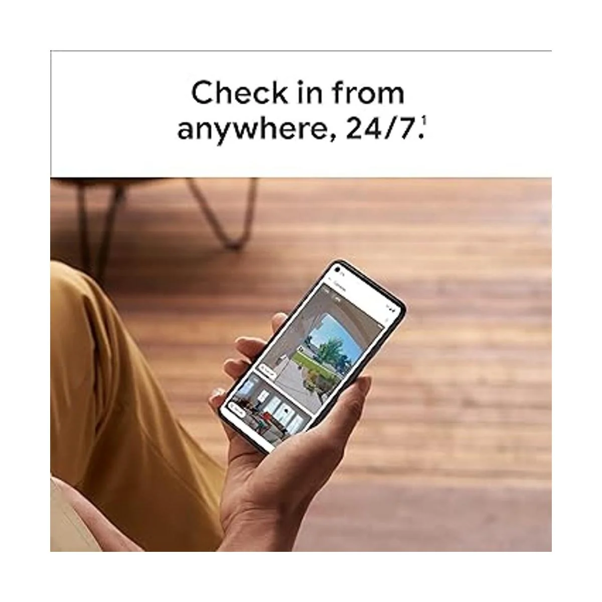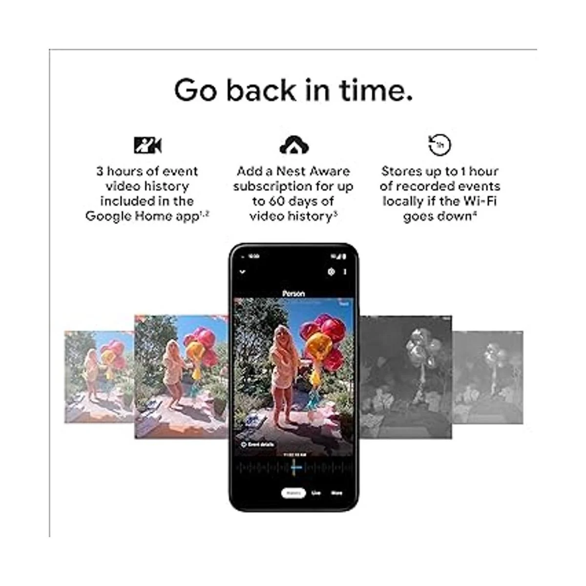 Regístrate fácilmente desde cualquier lugar 24/7 con video HD en vivo con HDR y visión nocturna1; ve lo que te perdiste con 3 horas de historial de video de eventos gratuitos2; o añade una suscripción a Nest Aware se vende por separado hasta 60 días de historial de video del evento 3