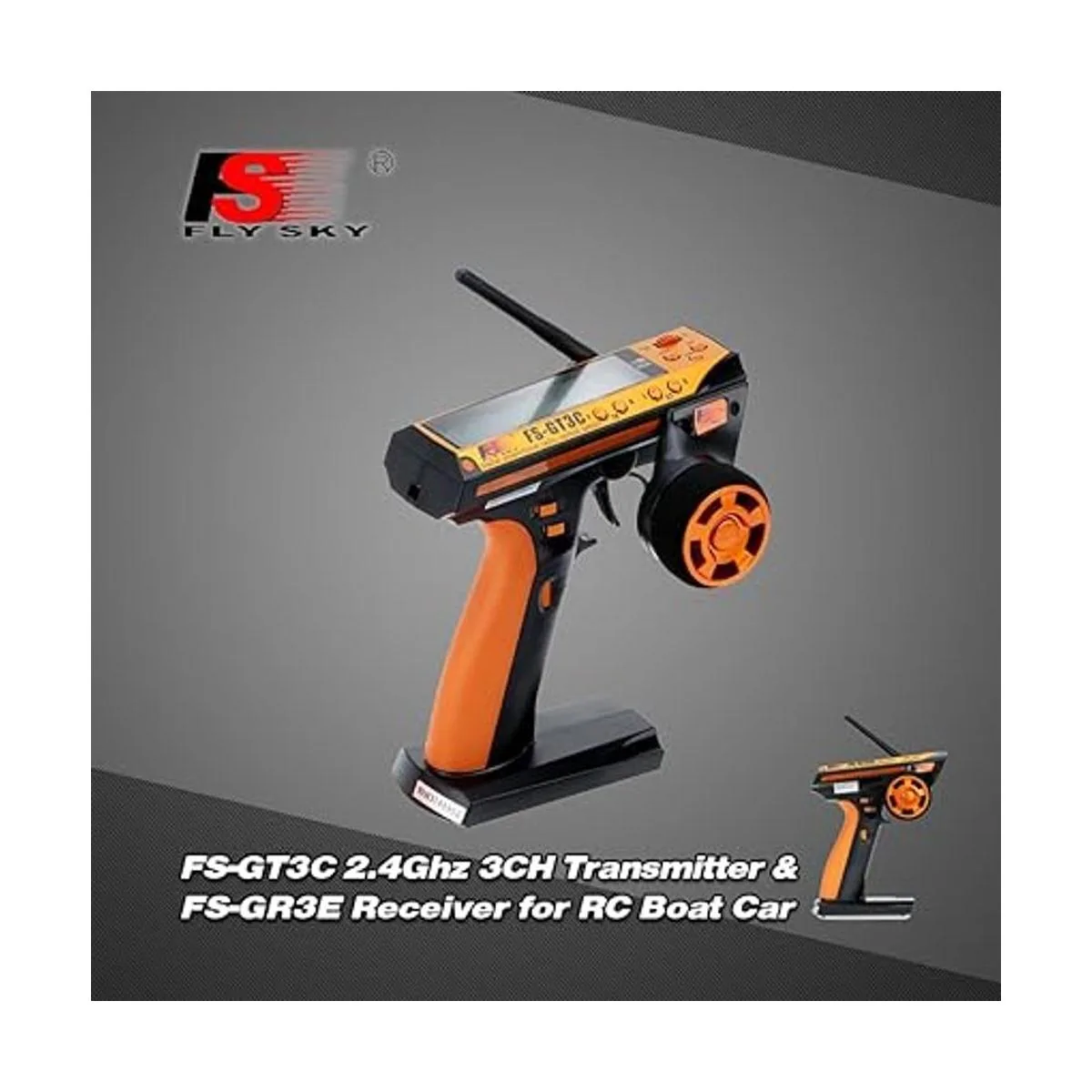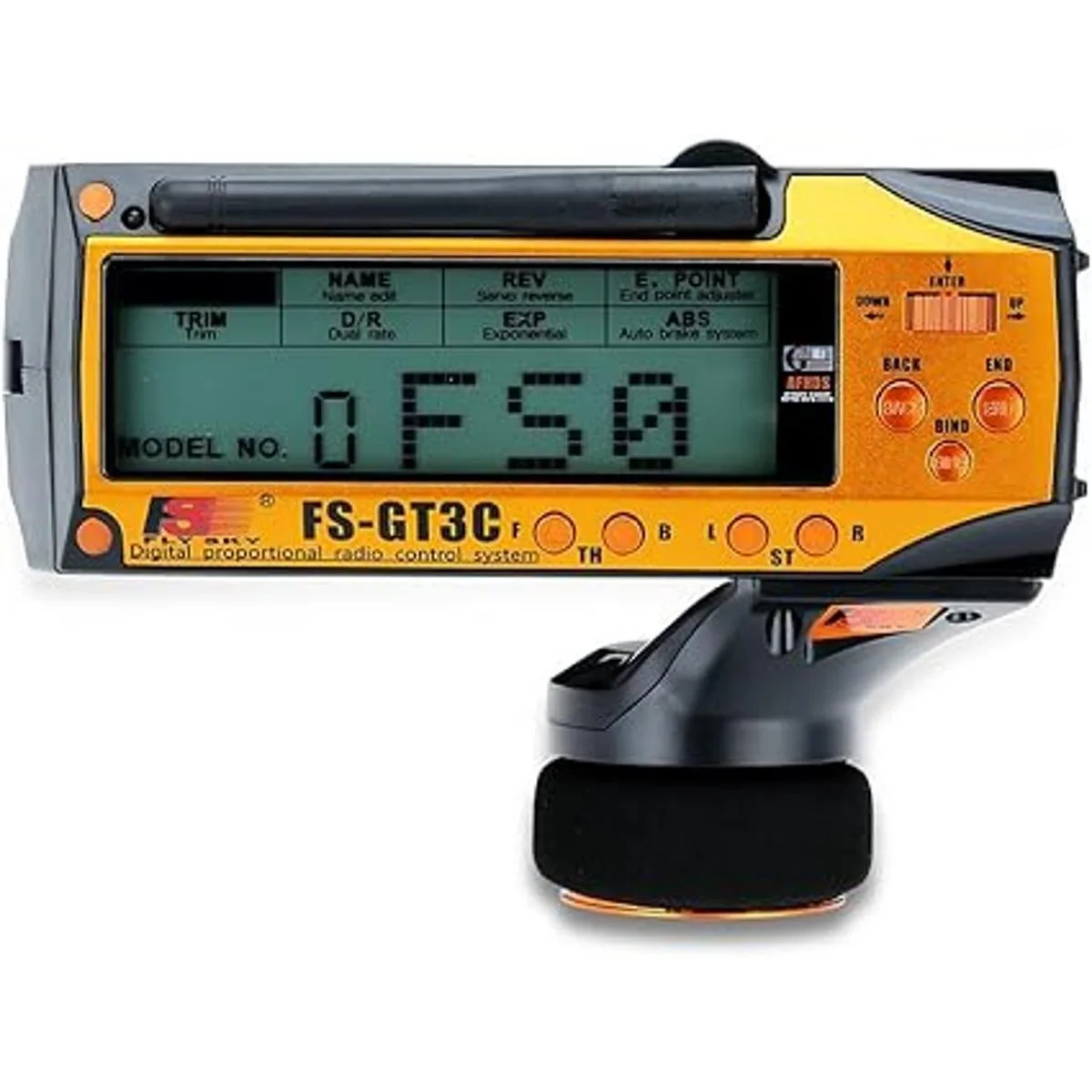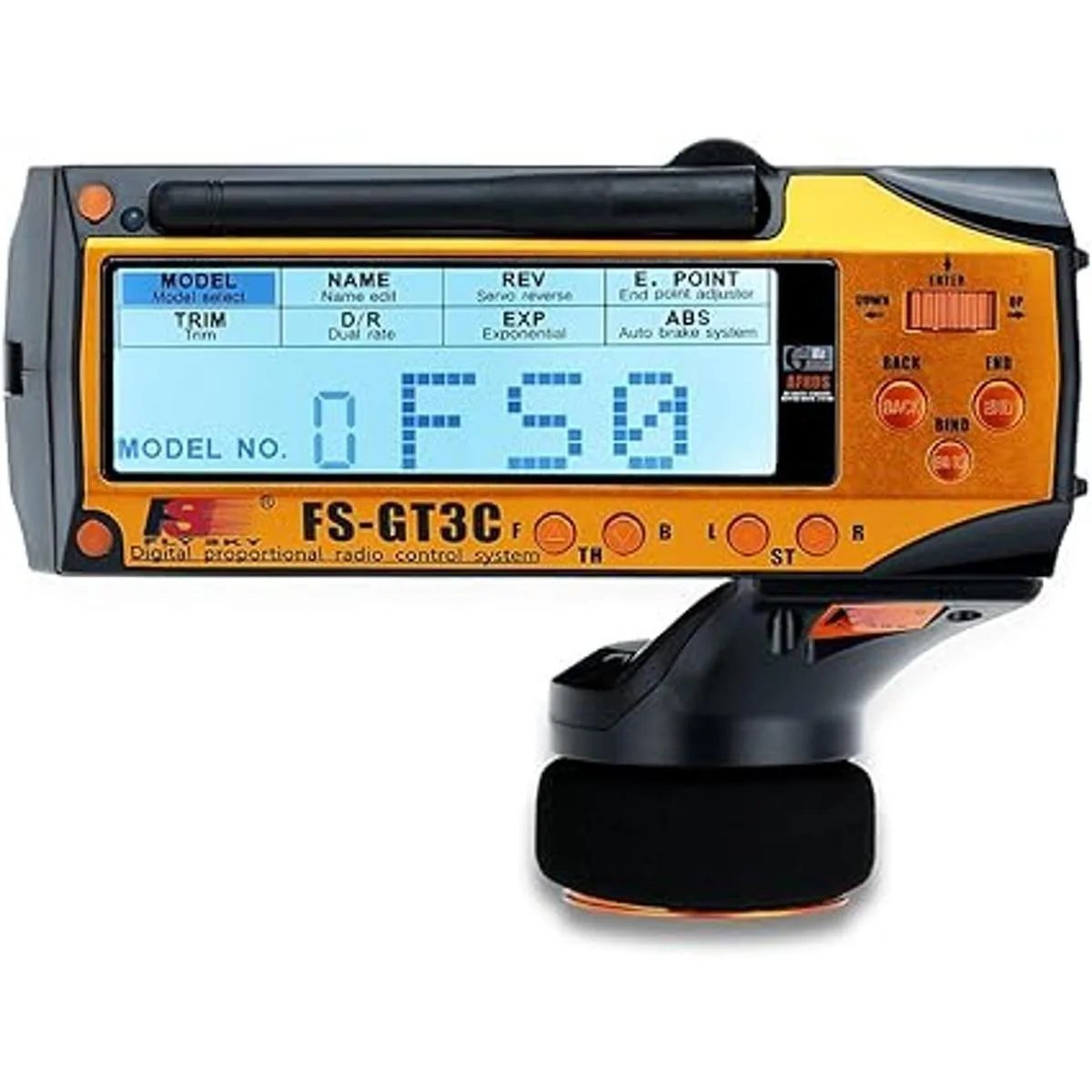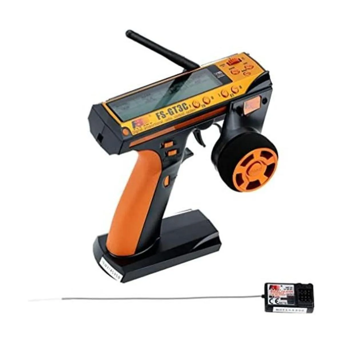 GoolRC Flysky FSGT3C Transmisor RC 2.4 GHz 3CH LCD Mando a distancia con receptor FSGR3E para RC Coche Barco amarillo