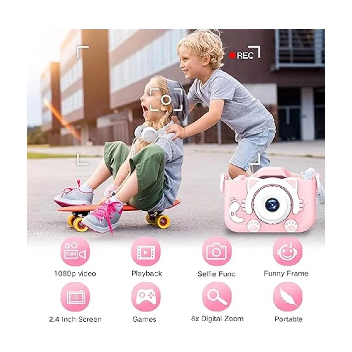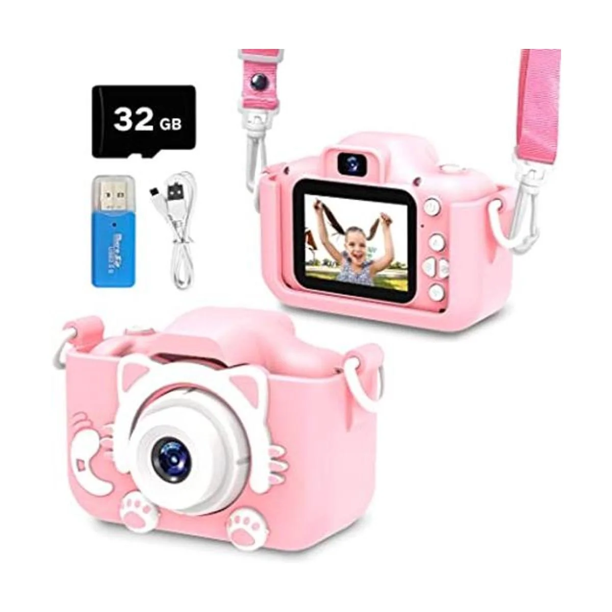 Goopow Cámara digital para niños de 3 a 8 años, cámara de video con funda suave de silicona y diseño de caricatura, regalo de navidad, cumpleaños y festividades para niños, incluye tarjeta SD de 32G