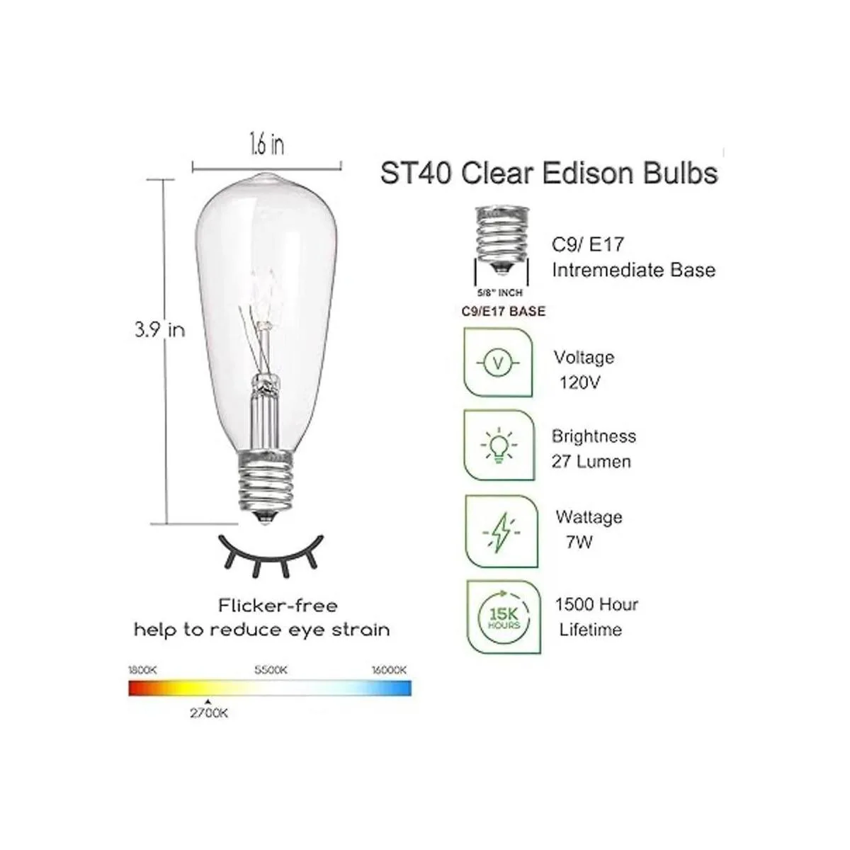 Goothy ST40 Bombillas de repuesto estilo Edison C9E17 IntremediateBase 10 unidades