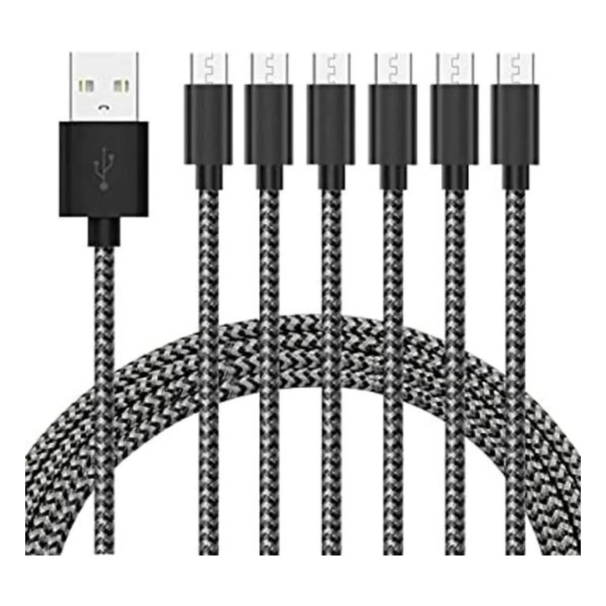 Largo y silencioso: paquete de 6 cables micro USB con una longitud más larga de 4.9 ft que tu original, gran longitud para uso diario, cabezal de conector compacto que se adapta a la mayoría de las fundas.