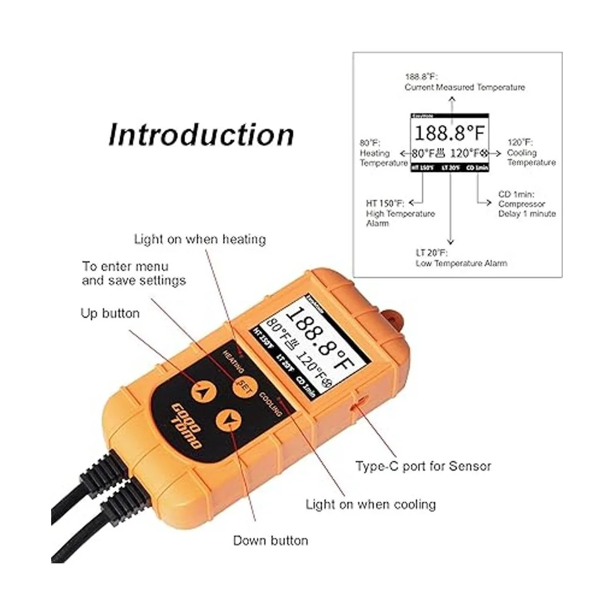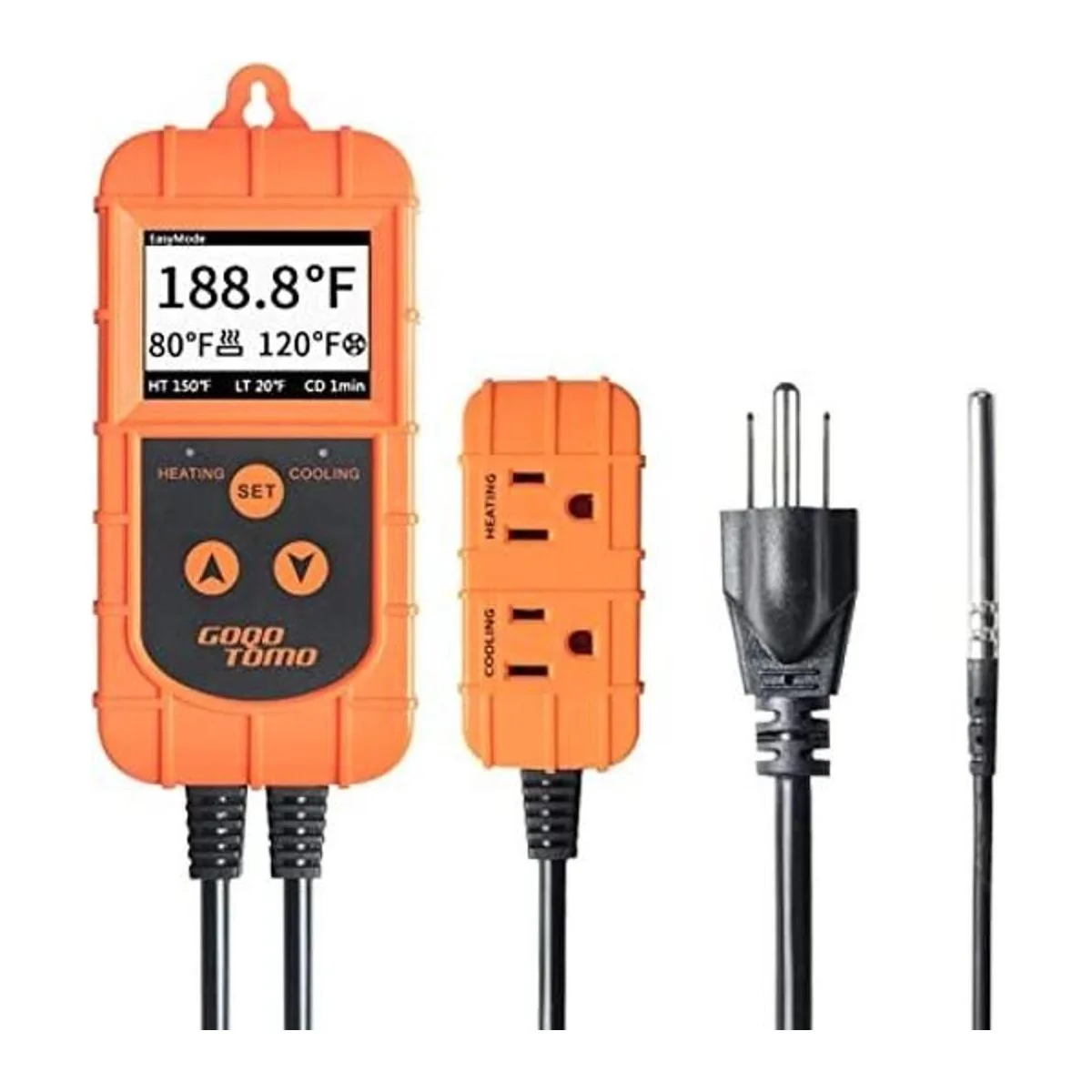 GOQOTOMO Controlador de Temperatura Inteligente Termostato Calefacción y Refrigeración Modo Carboy Homebrew Fermentador Invernadero Terrario 100240VAC NTC Sensor Versión Mejorada