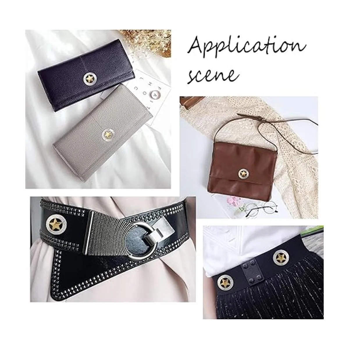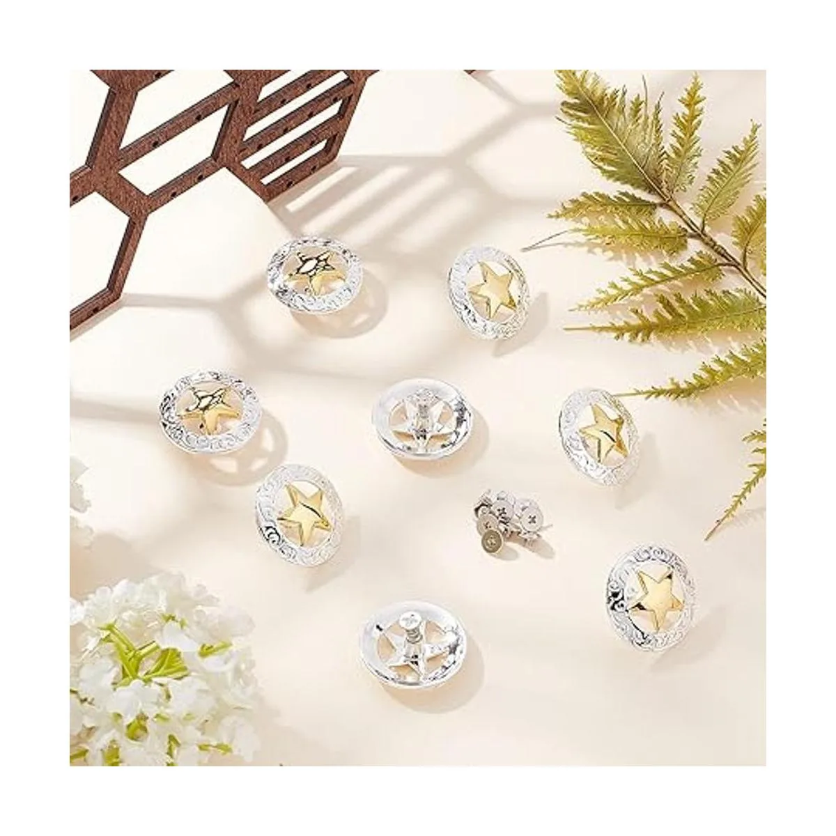 Diseño de estrellas huecas: los botones son planos y redondos con estrella hueca, adecuados para decorar bolsas de cuero, bolsos, cinturones, etc.