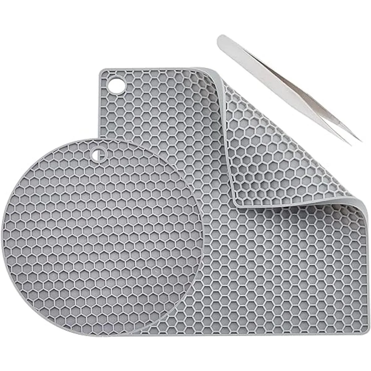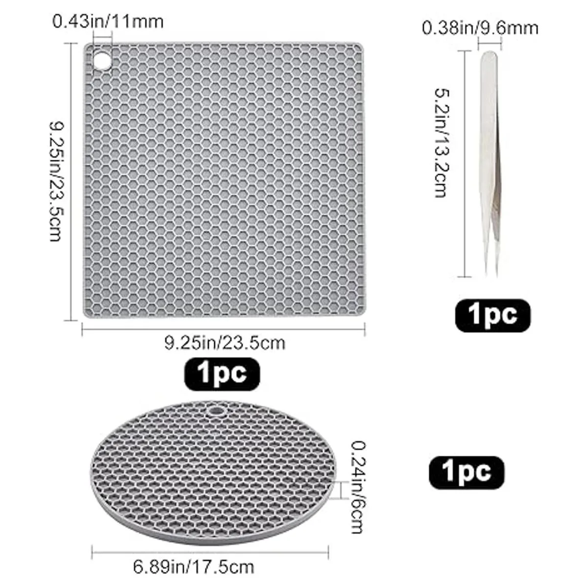 GORGECRAFT 2 estilos de alfombrillas de silicona redondas cuadradas de resina abovedada resistentes al calor, de goma sintética de panal de abeja, bandejas, pinzas para hacer joyas, manualidades, suministros de resina epoxi