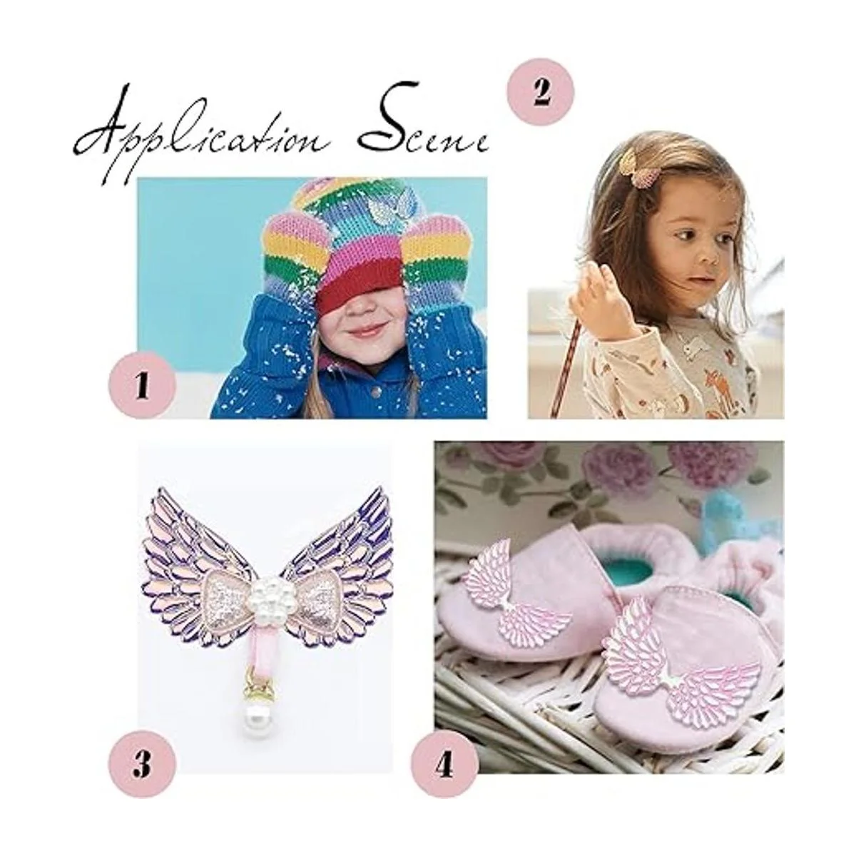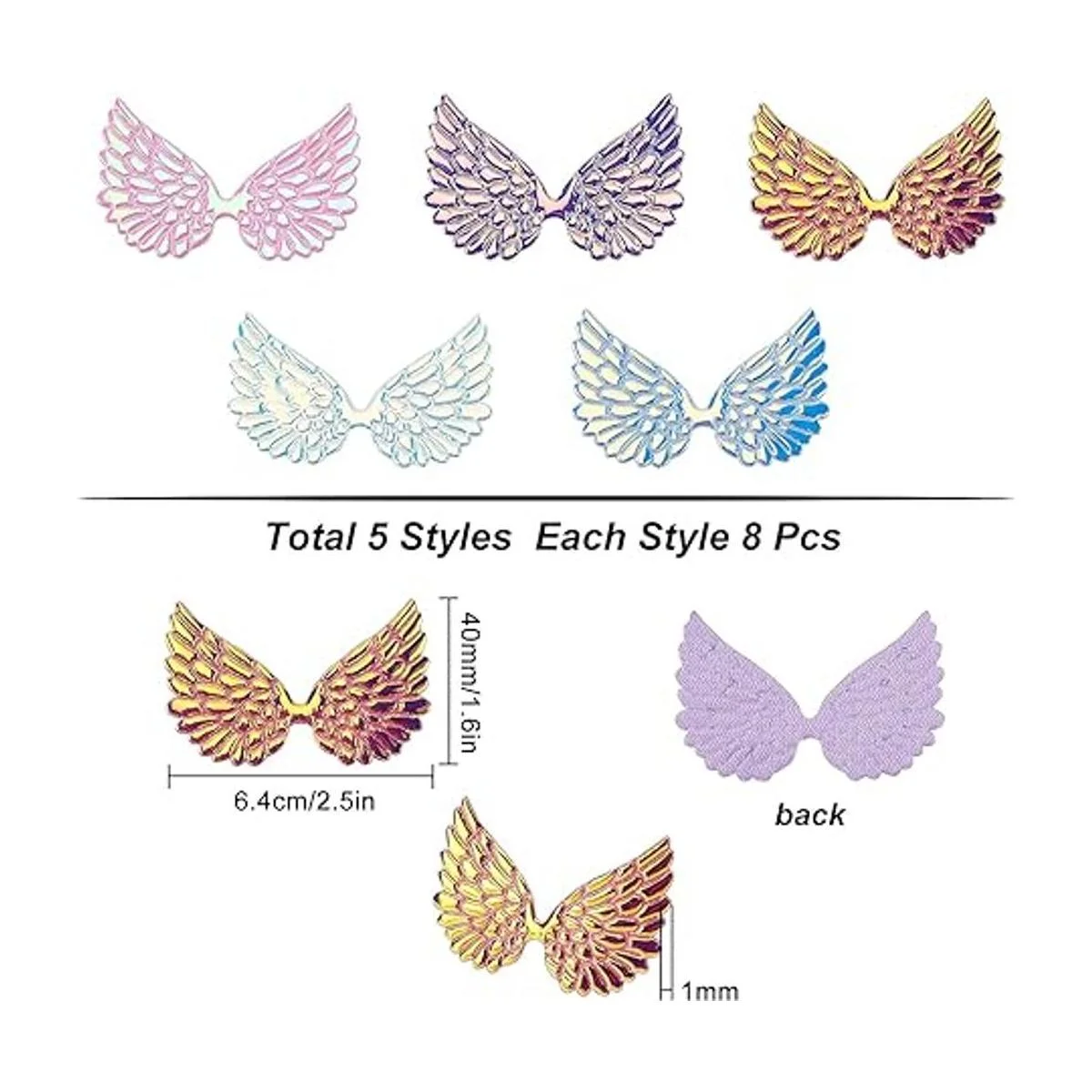Tamaño: las alas de ángel son de 1.6 x 2.5 x 0.0 in, 5 colores diferentes como se muestra en la imagen