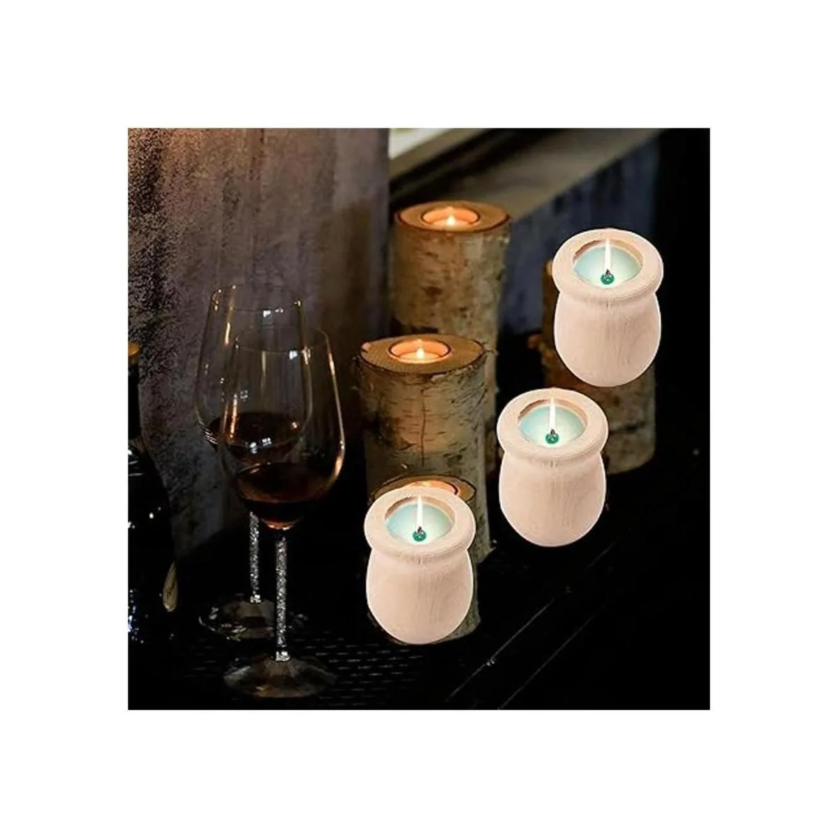 Multifunción: adecuado para decorar flores pequeñas, se puede utilizar como portavelas y también puedes dibujar en el jarrón de madera natural para satisfacer tus necesidades de manualidades. La superficie de madera acepta muchos medios como pegamento, cera, marcador, pintura, etc.