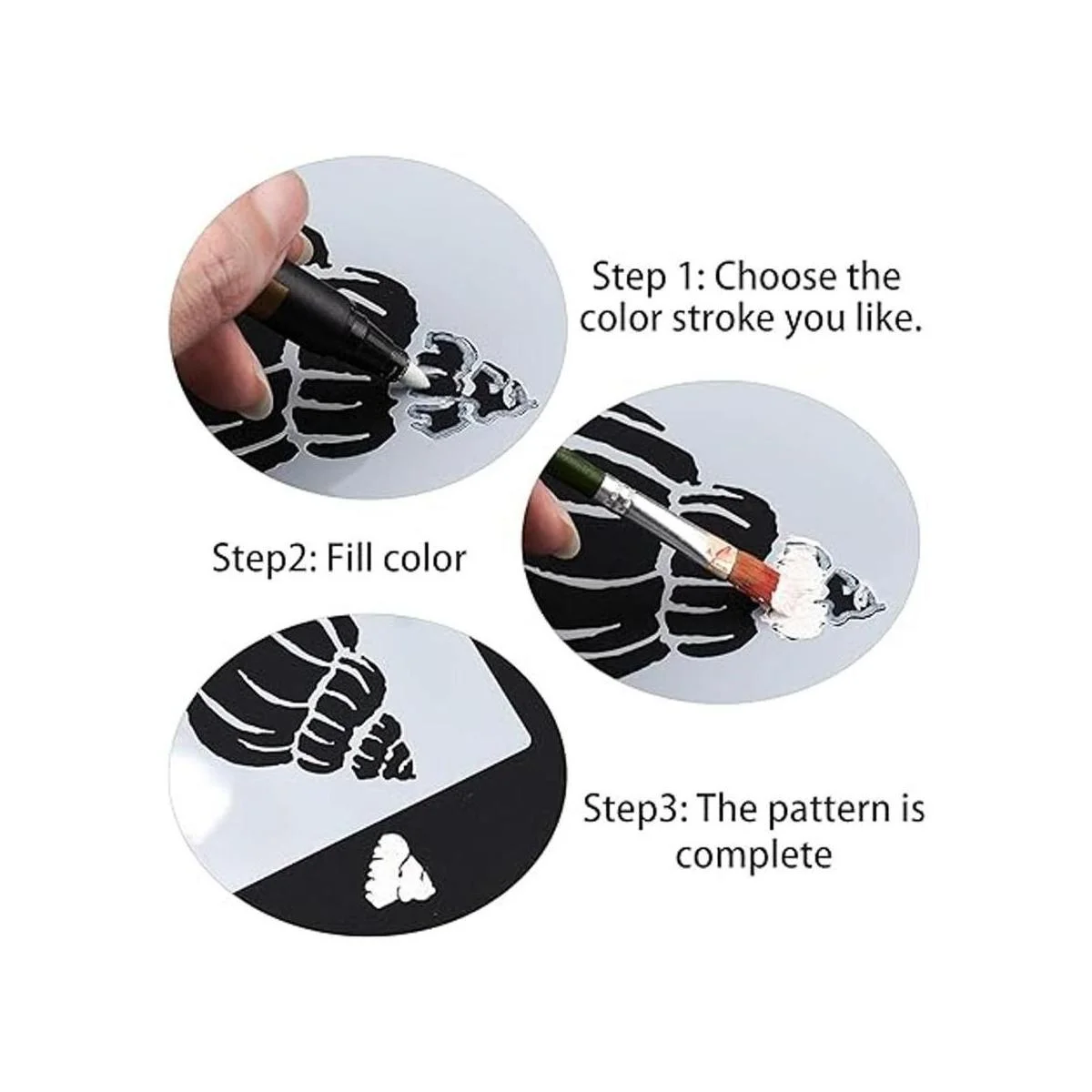 Fácil de usar: simple y fácil de usar, simplemente elige las plantillas de pulverización de dibujo de plástico que te gusten y dibuja, entonces obtendrás un patrón completo y bonito, será divertido usar tu color favorito para llenar las plantillas.