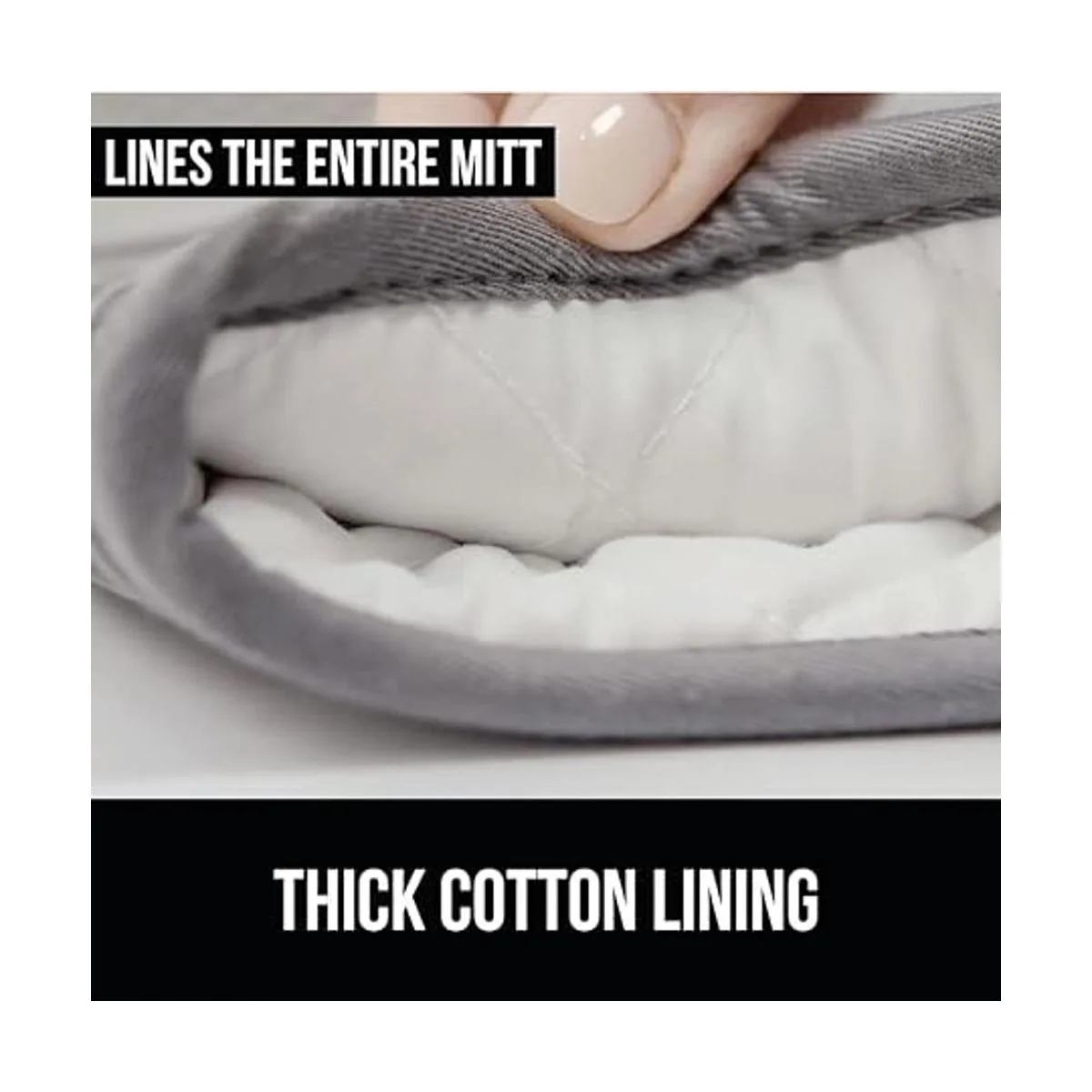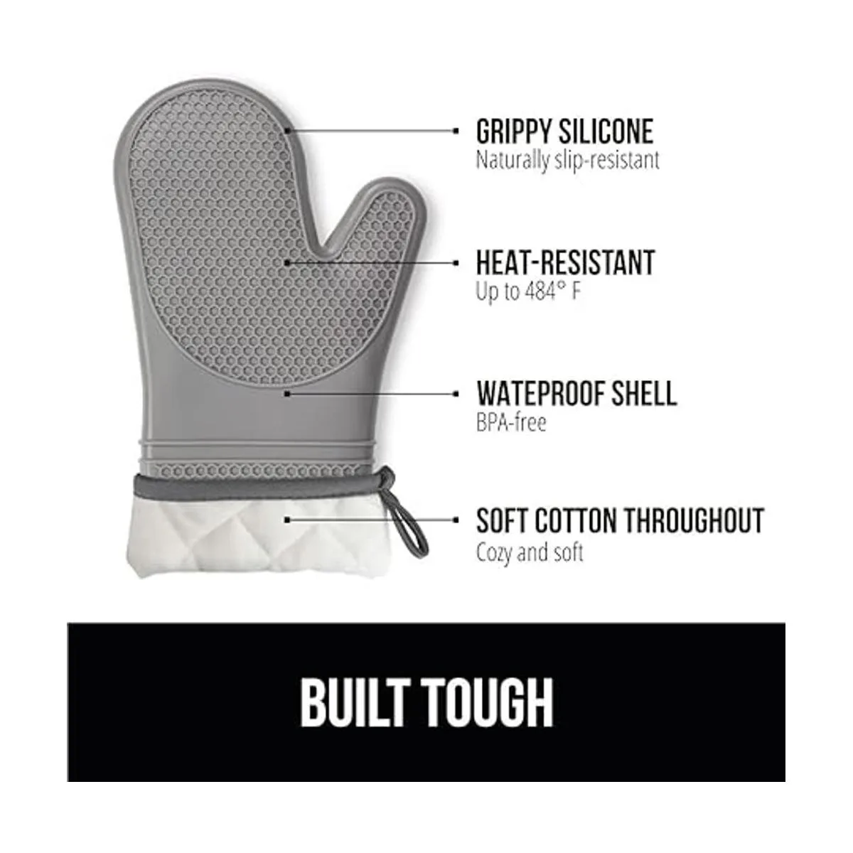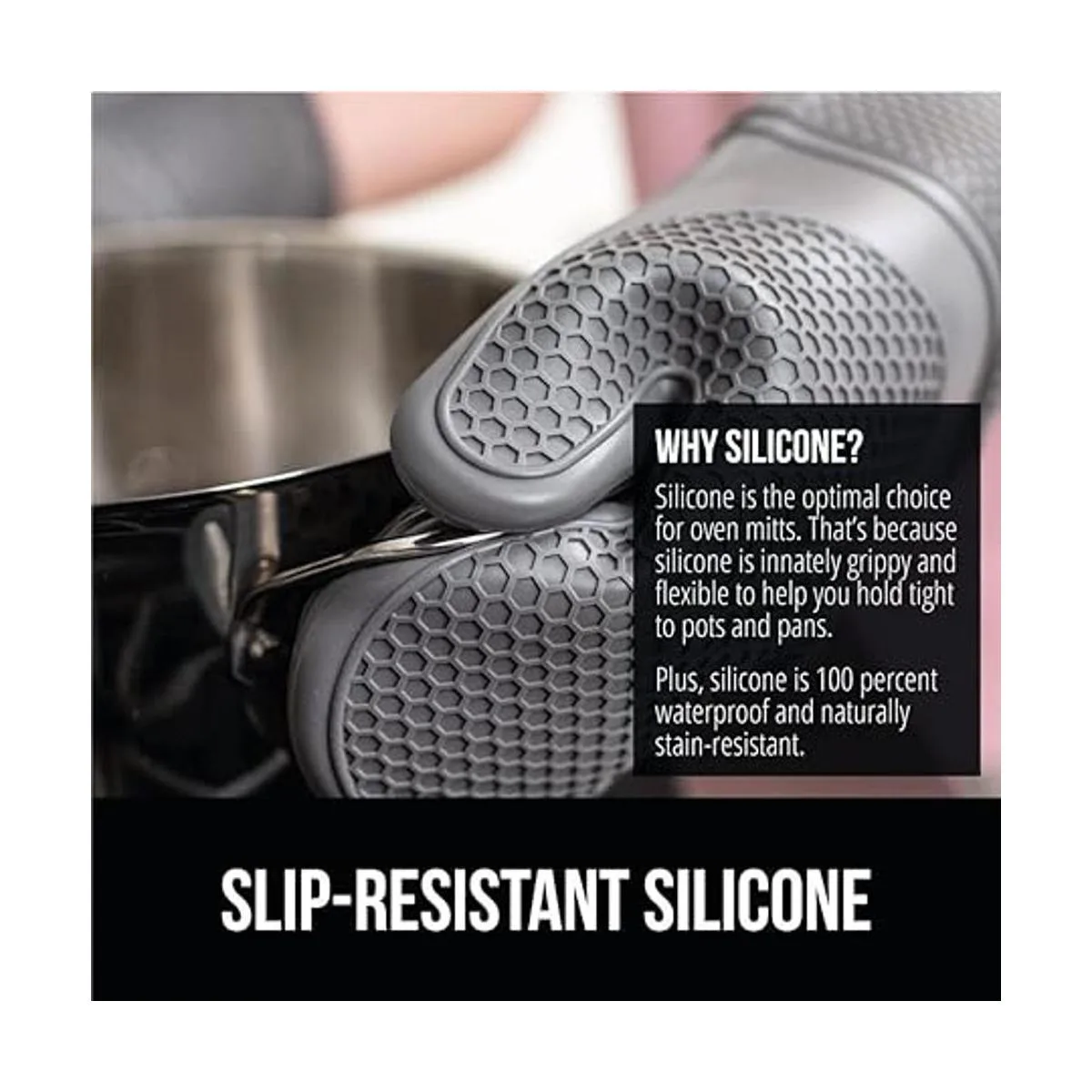 Gorilla Grip Juego de guantes de horno de silicona resistentes al calor, forro acolchado suave, extralargos, guantes flexibles impermeables para cocinar y hacer barbacoa, manoplas de cocina, fáciles de limpiar, juego de 2, color gris