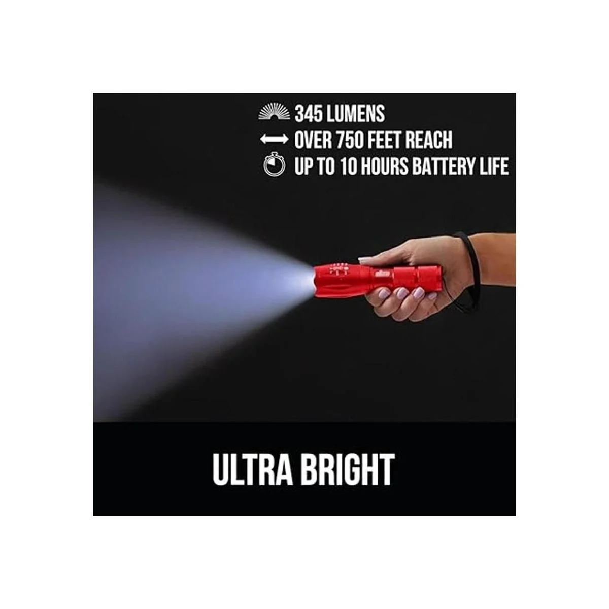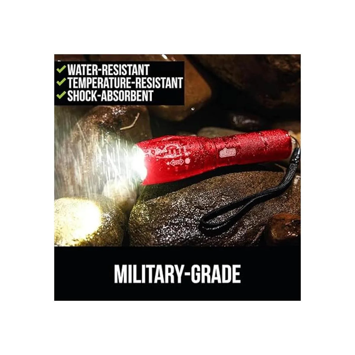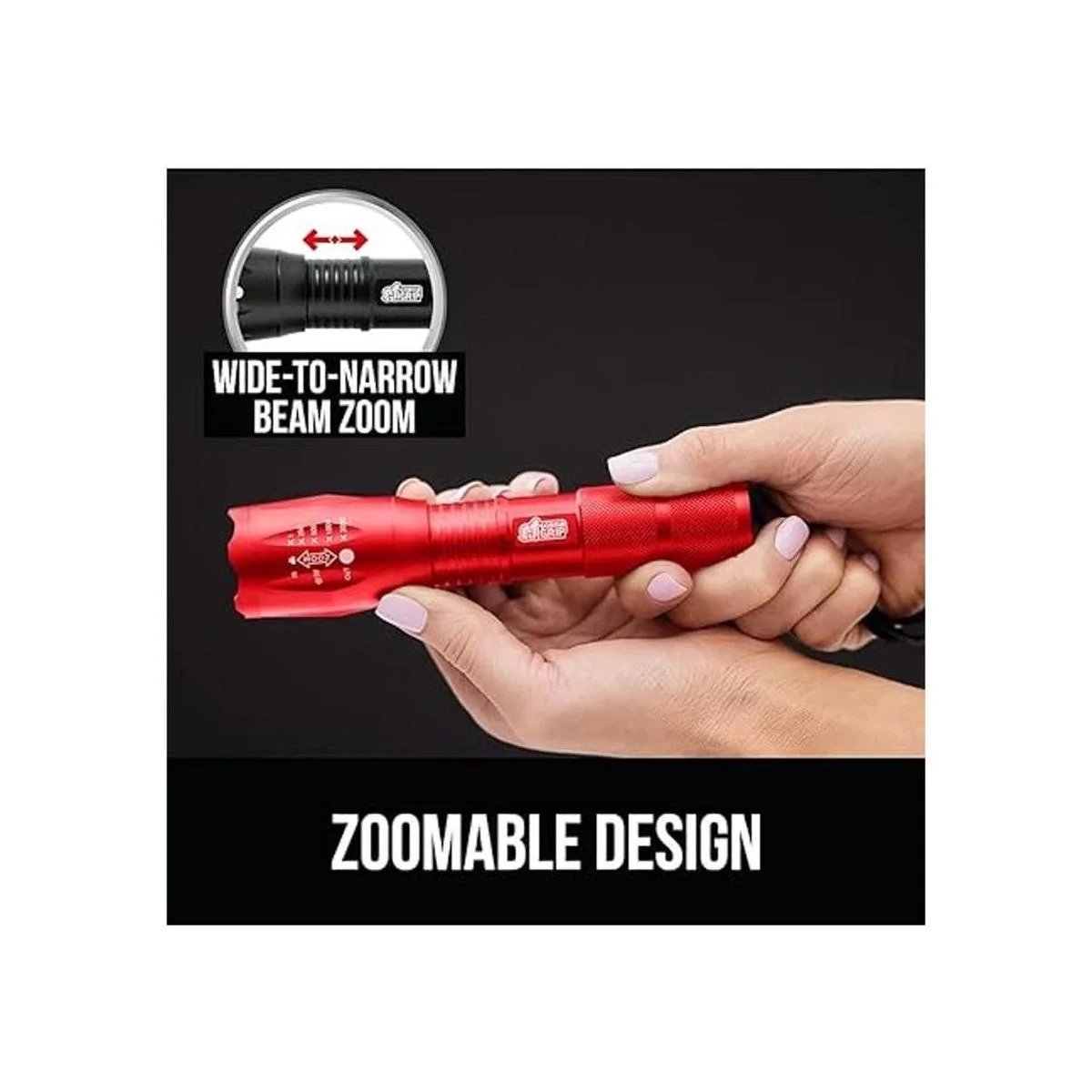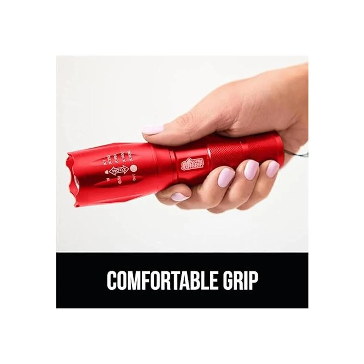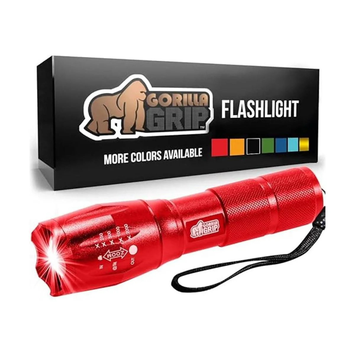 Gorilla Grip Linterna táctica LED de mano, altos lúmenes, modos ultra brillantes, resistente al agua de larga duración, linternas de zoom de 750 pies, accesorio de campamento, equipo de campamento al aire libre, cortes de emergencia, rojo
