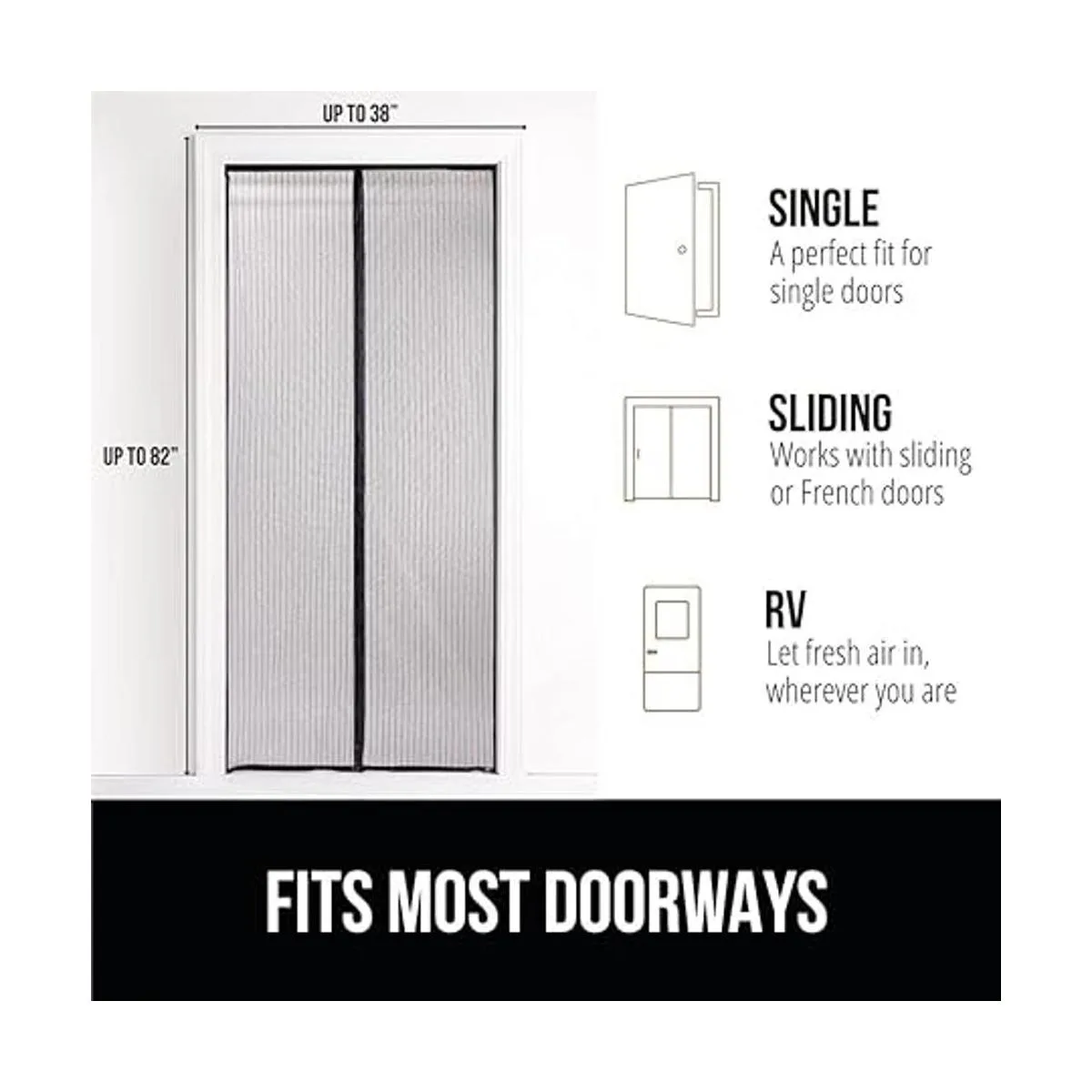 Gorilla Grip Puerta de pantalla magnética autosellante manos libres, mantiene los insectos fuera, cortina de malla resistente, red magnética para puerta, cubre una sola puerta, patio, puertas corredizas, imanes de cierre para mosquitos, mascotas y niños, 38 x 82 pulgadas