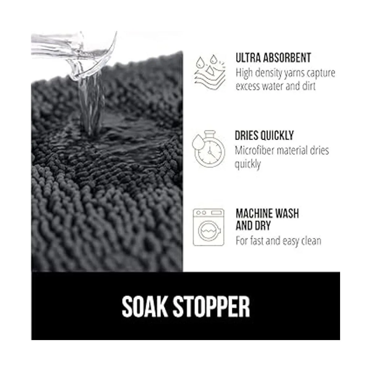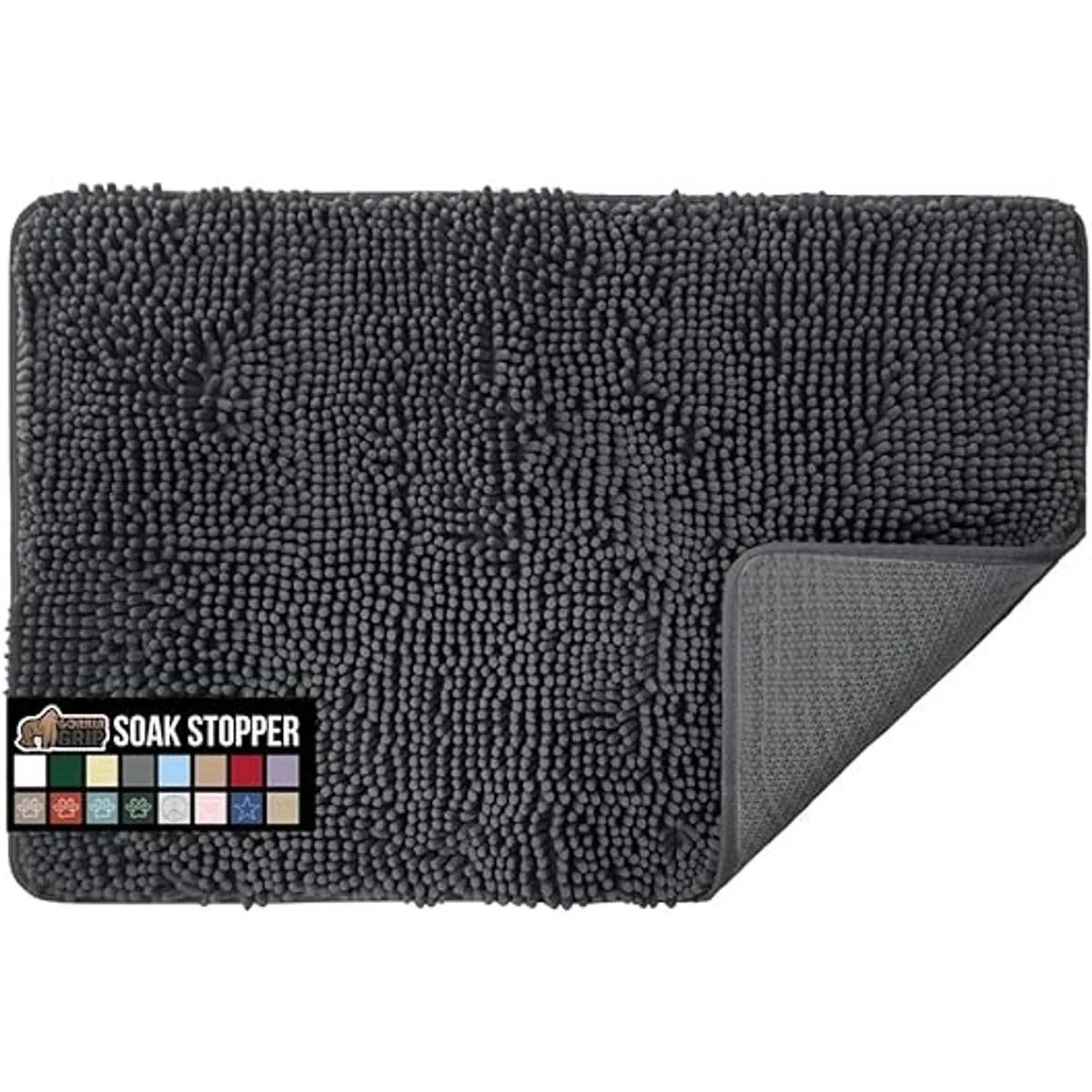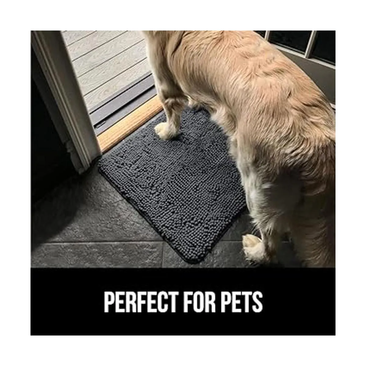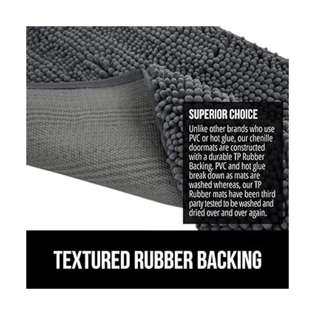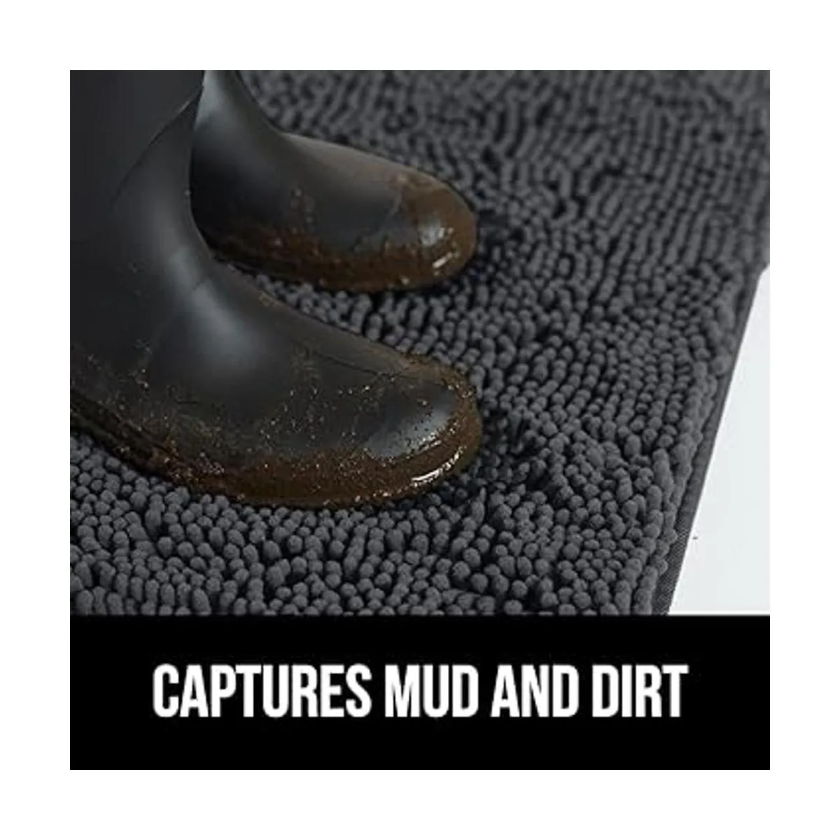 Gorilla Grip Tapete de felpilla resistente para interiores, 24 x 17 pulgadas, suave y absorbente, atrapa el agua y la humedad, para zapatos fangosos o patas de perro, respaldo duradero, lavable a máquina, tapete para puerta de entrada, para zonas de mucho paso, color carbón