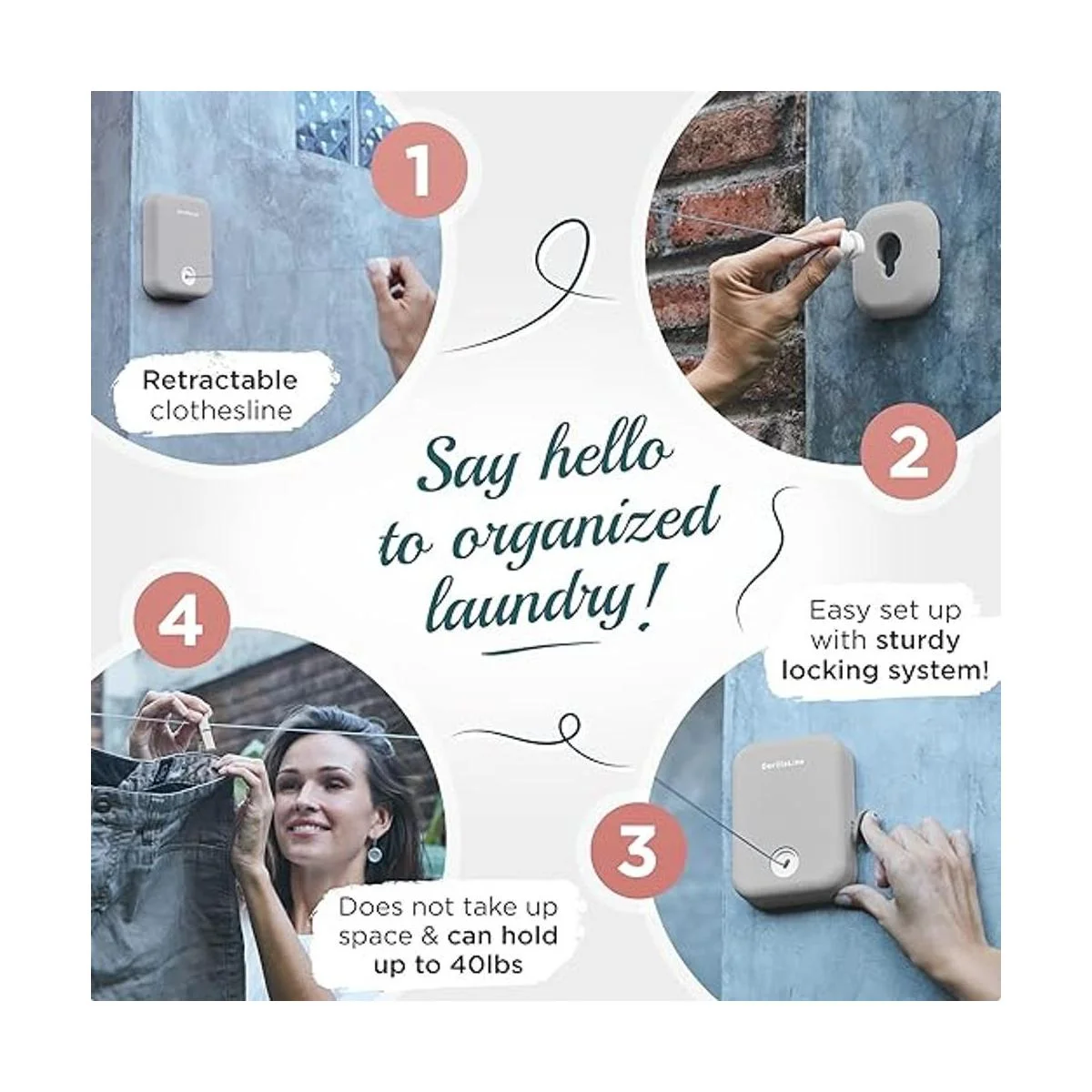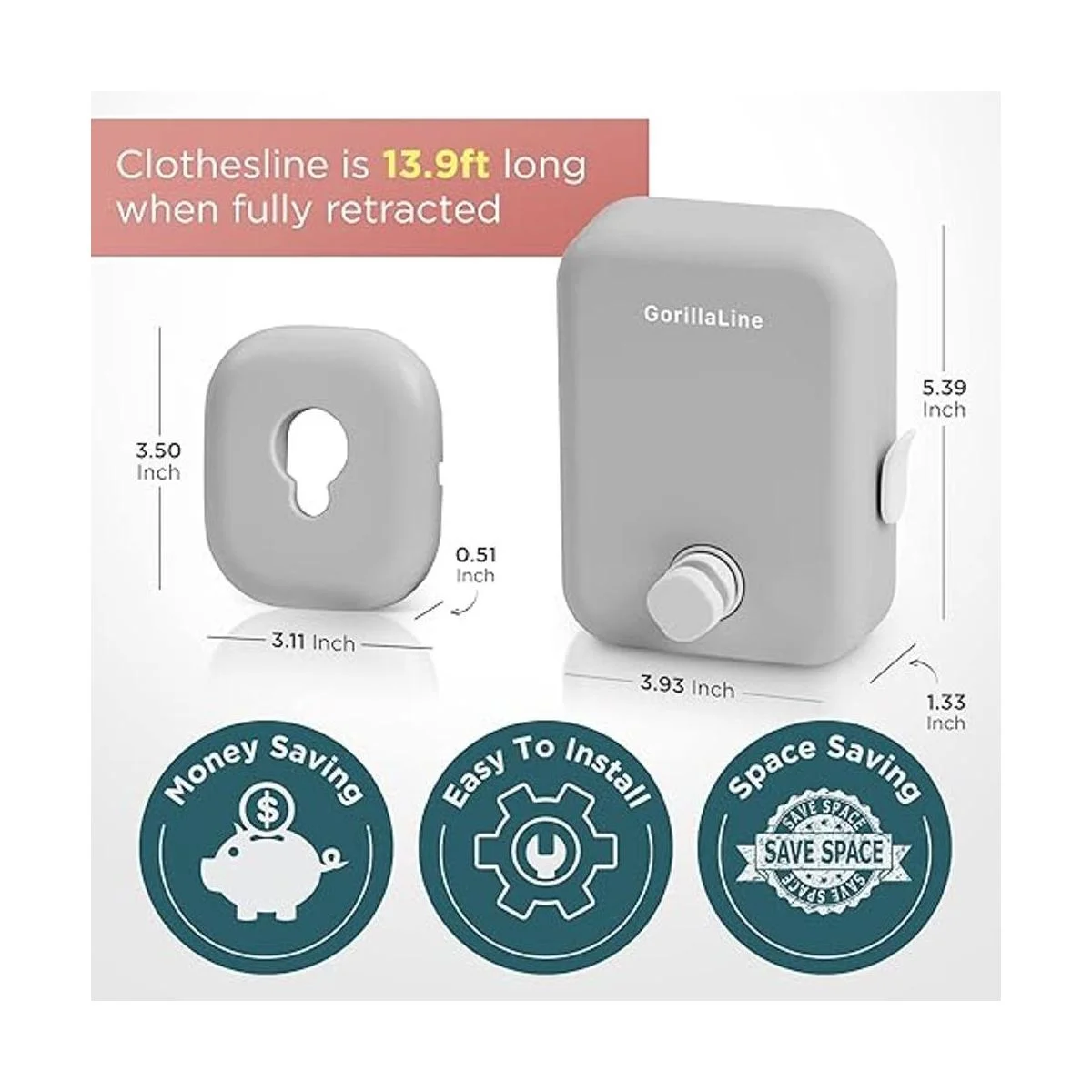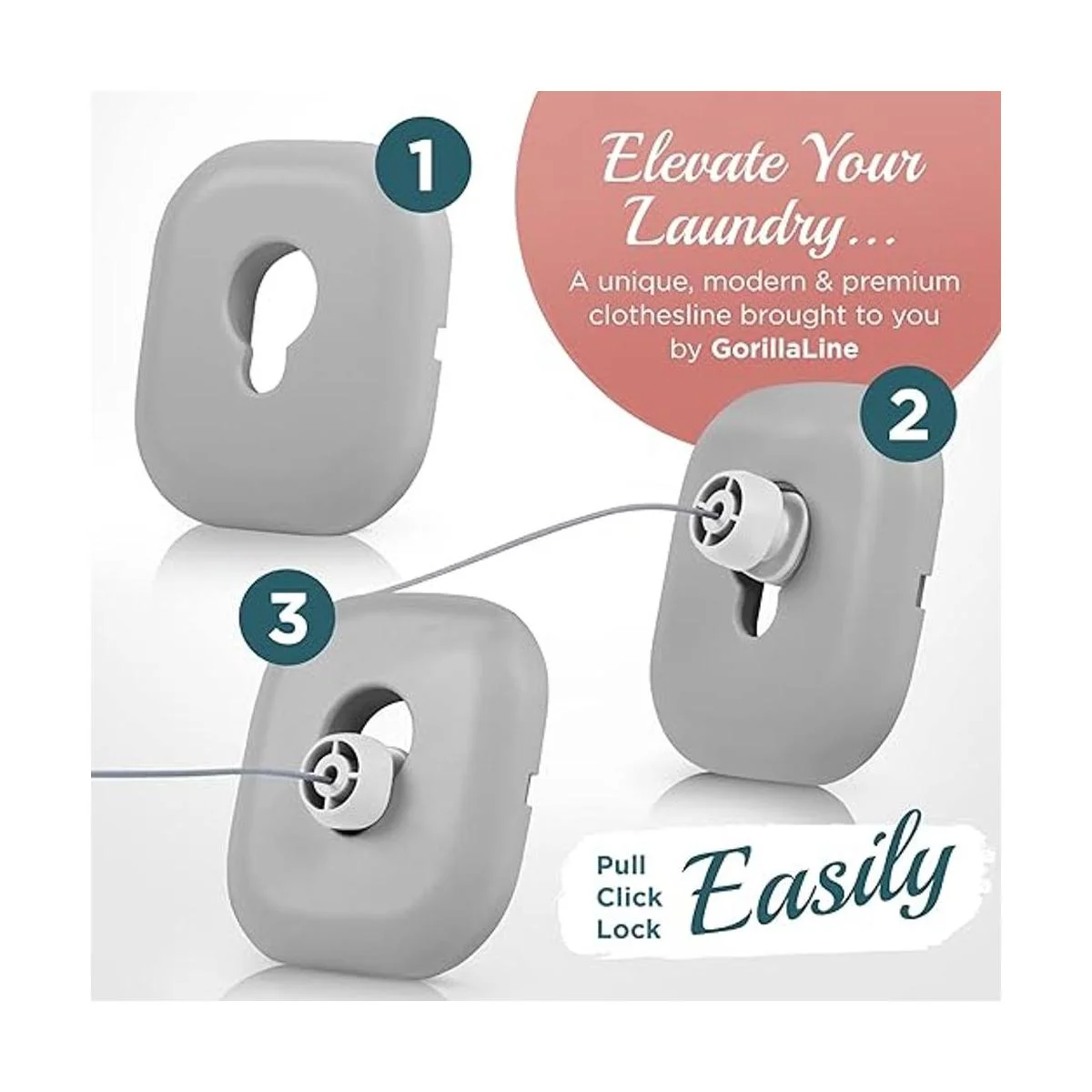 GorillaLine Tendedero retráctil para interiores y exteriores Línea de ropa resistente para secar ropa Línea de ropa para secar en la pared Colgante retráctil Bloqueo para evitar la flacidez