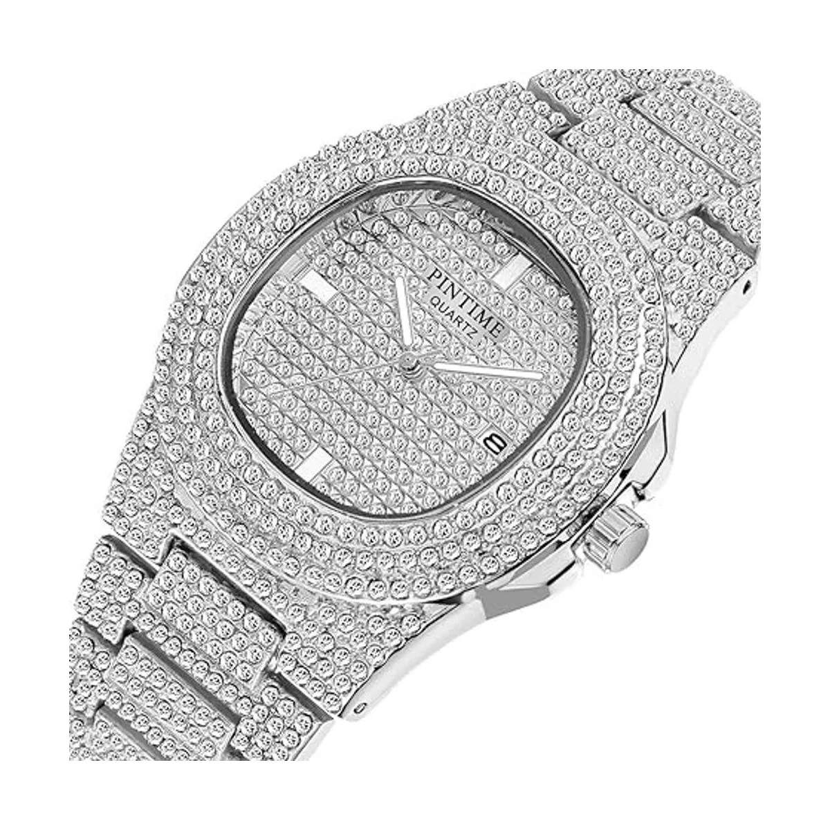 Aspecto llamativo: totalmente helado con diamantes de imitación de cristal brillante. Te da una moda hiphop de lujo para hombre.