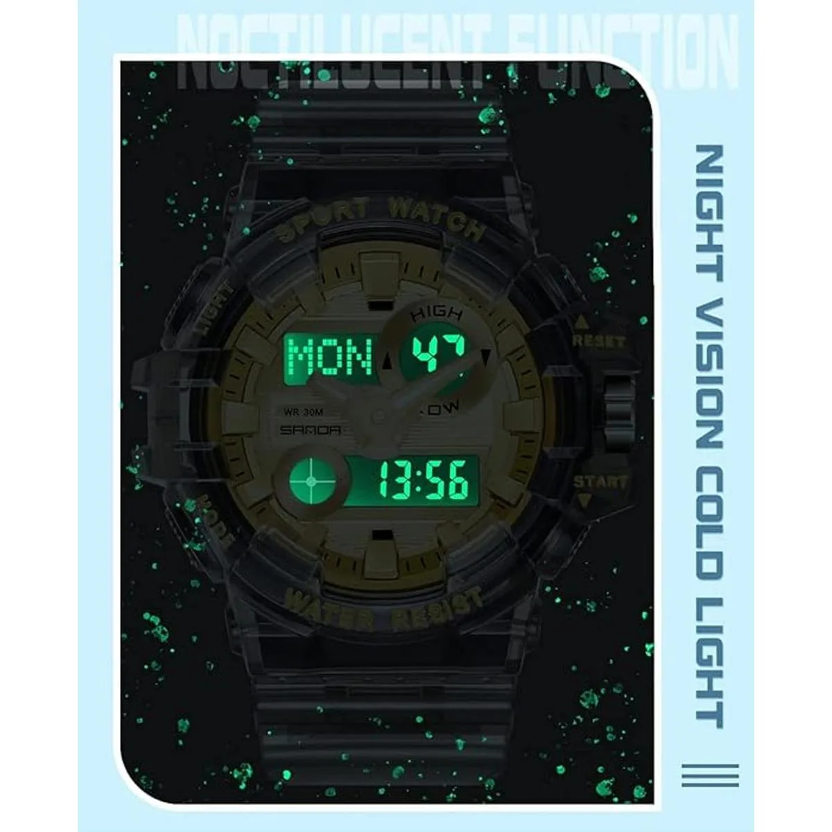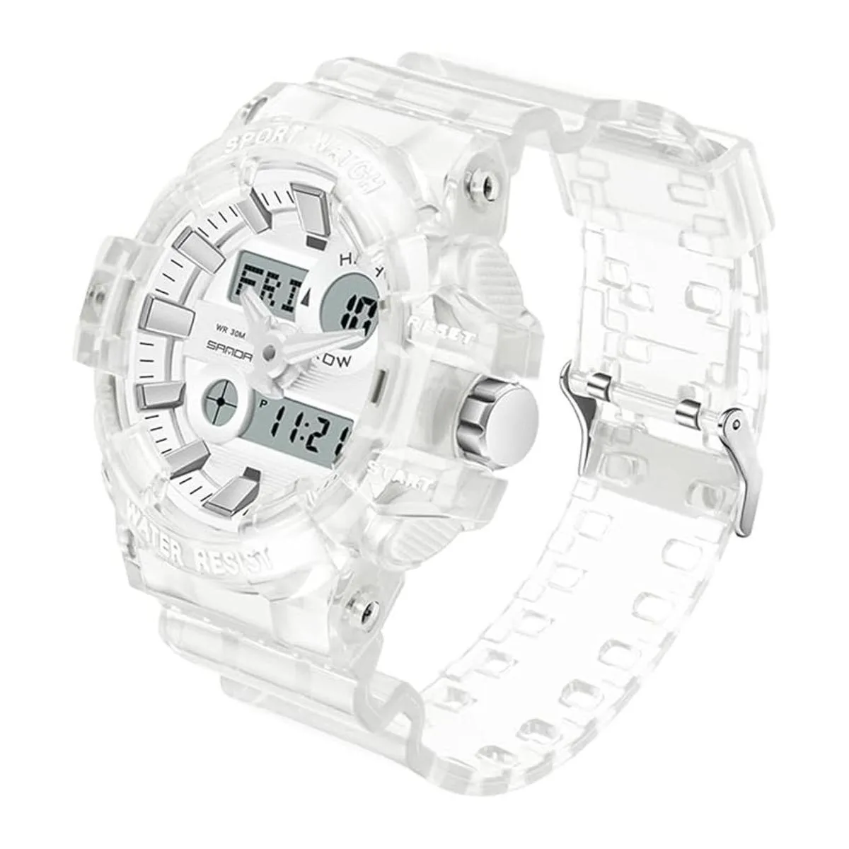 Gosasa Reloj digital multifunción transparente para hombres y mujeres, con doble pantalla de 12 horas 24 horas, cronómetro, unisex, reloj de pulsera