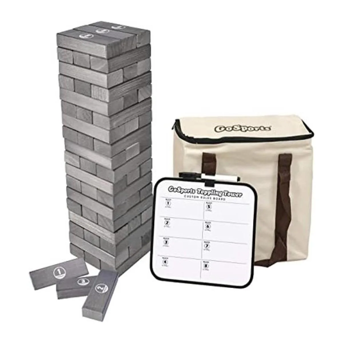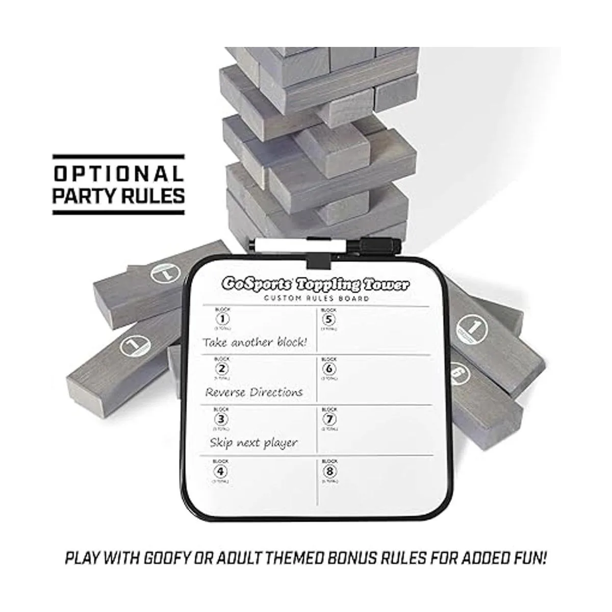GoSports Torre grande de bloques apilables con reglas de bonificación, comienza a partir de 1.5 pies y crece a más de 3 pies, hecho de bloques de pino premium