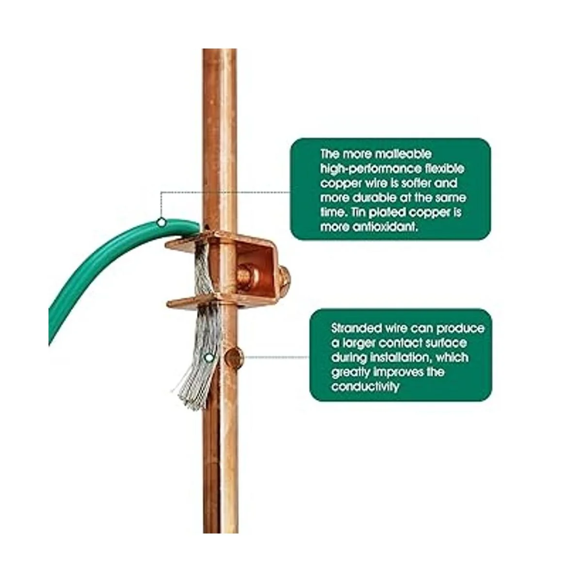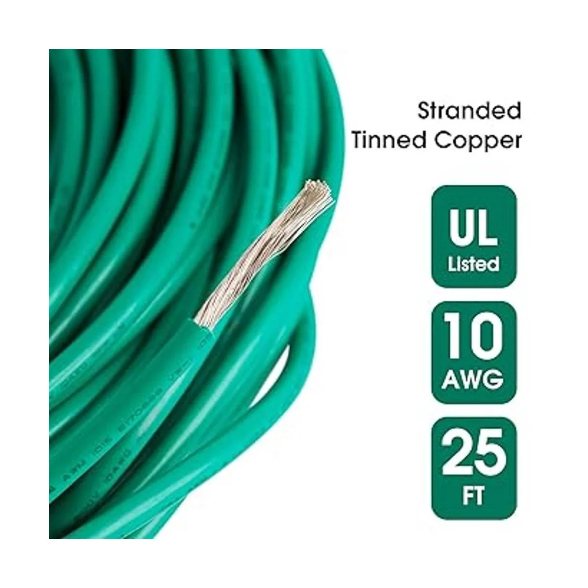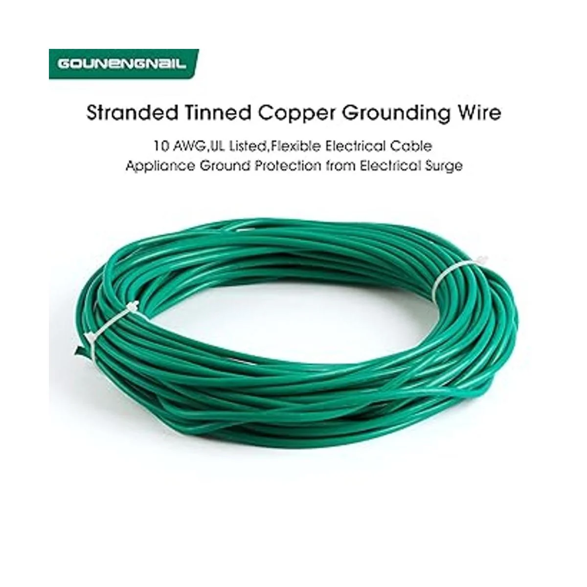 GOUNENGNAIL Cable de conexión a tierra de cobre estañado 10 AWG, listado UL, cable eléctrico flexible, protección de tierra del electrodoméstico contra sobretensiones eléctricas verde, 25 pies 24.6 ft