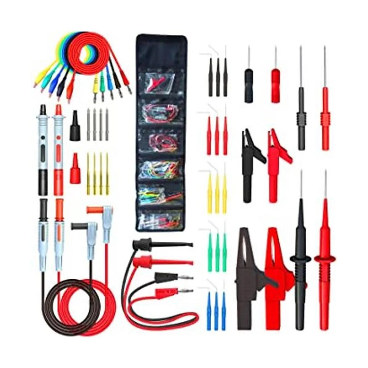 El kit de sonda de 47 cables de prueba de multímetro se puede utilizar no solo para pruebas eléctricas, diagnóstico automotriz, pruebas y reparación, sino también en laboratorios de física, escuelas, hogares e industrias. Sondas reemplazables, tapones de plátano, clips de cocodrilo, sondas de perforación de alambre y mini clips de gancho de agarre pueden ayudar a ampliar la capacidad de prueba y la flexibilidad.