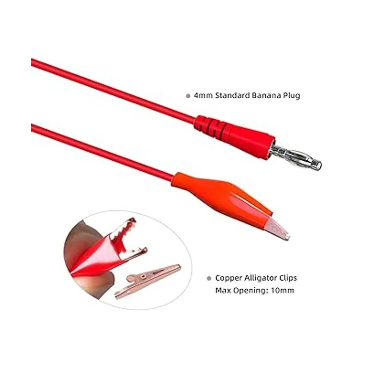Los cables de prueba de plátano a cocodrilo están hechos de material de cobre de alta calidad que es suave, flexible y duradero. Los tapones banana estándar de 0.157 in pueden adaptarse a la mayoría de multímetros. Los clips de cocodrilo de cobre proporcionan una conductividad más fuerte y fuerza de sujeción. Longitud: 3.3 ft. Corriente nominal: 5 A.