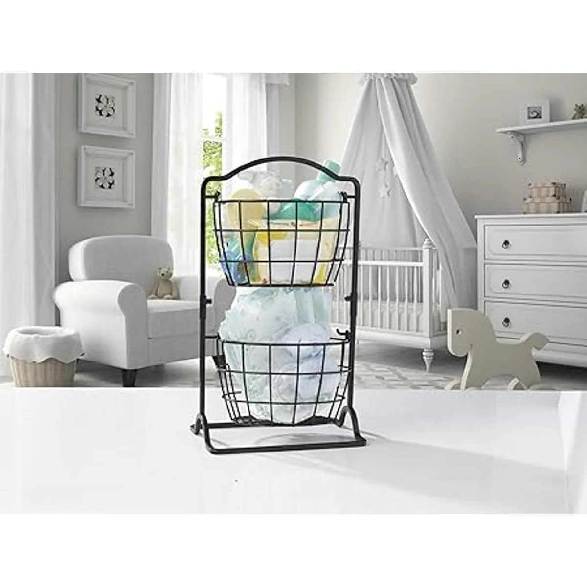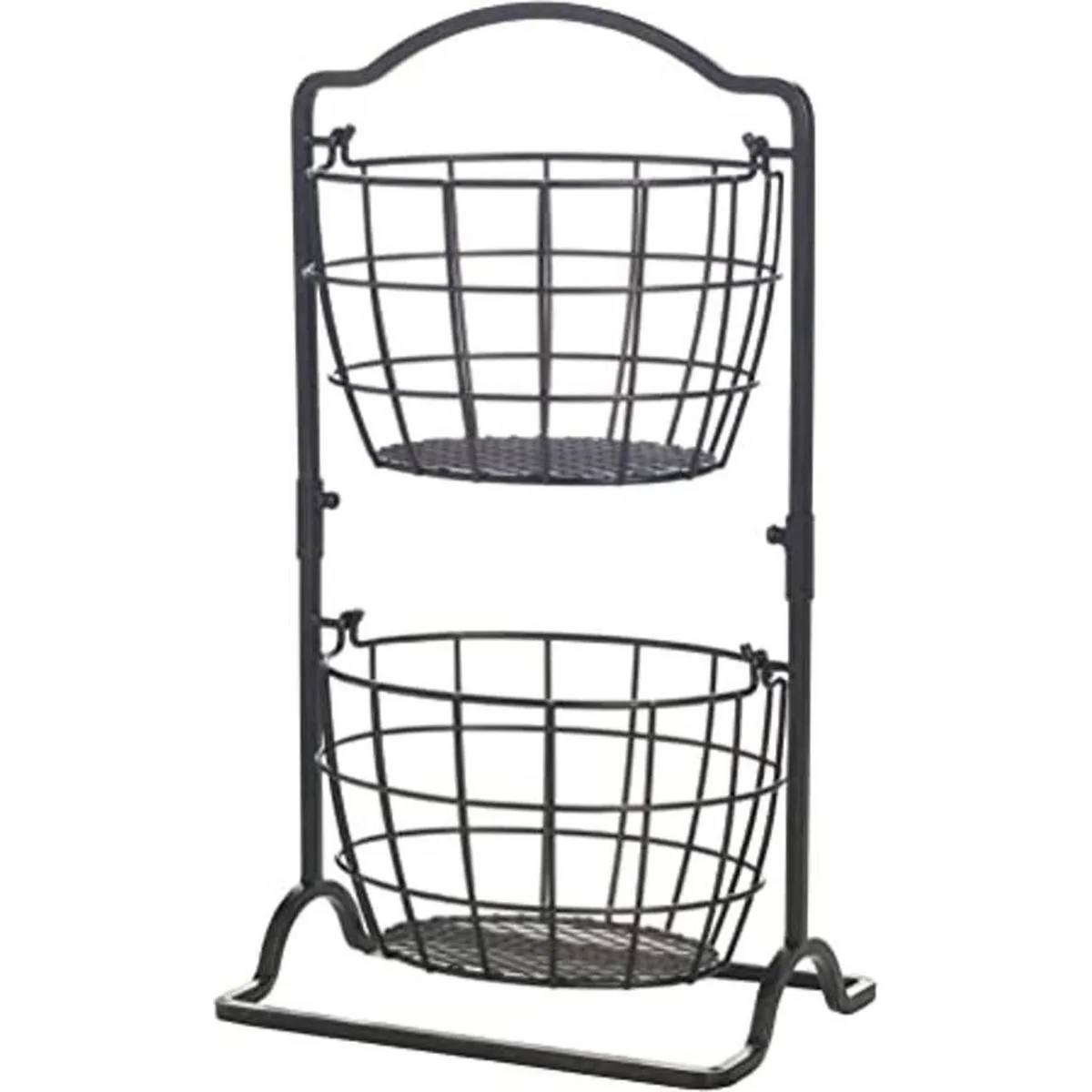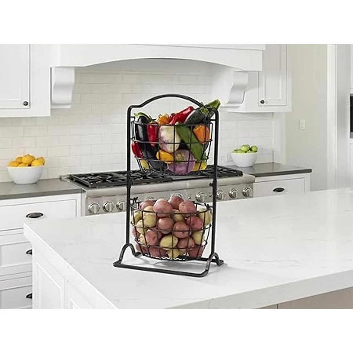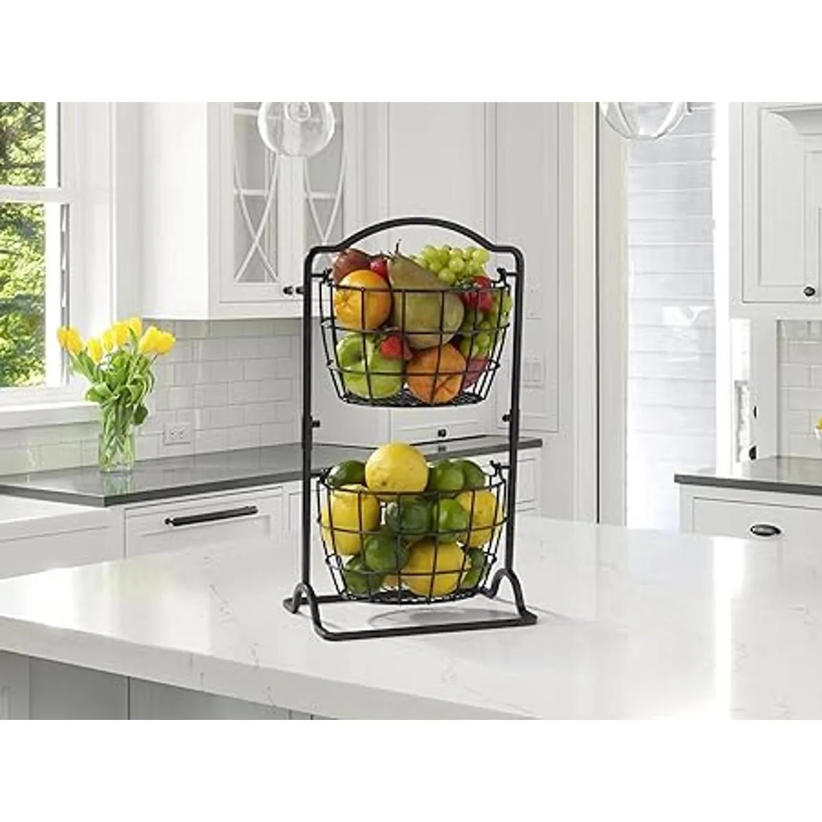Gourmet Basics by Mikasa Harbor Cesta de almacenamiento de frutas de metal de 2 niveles, color negro antiguo