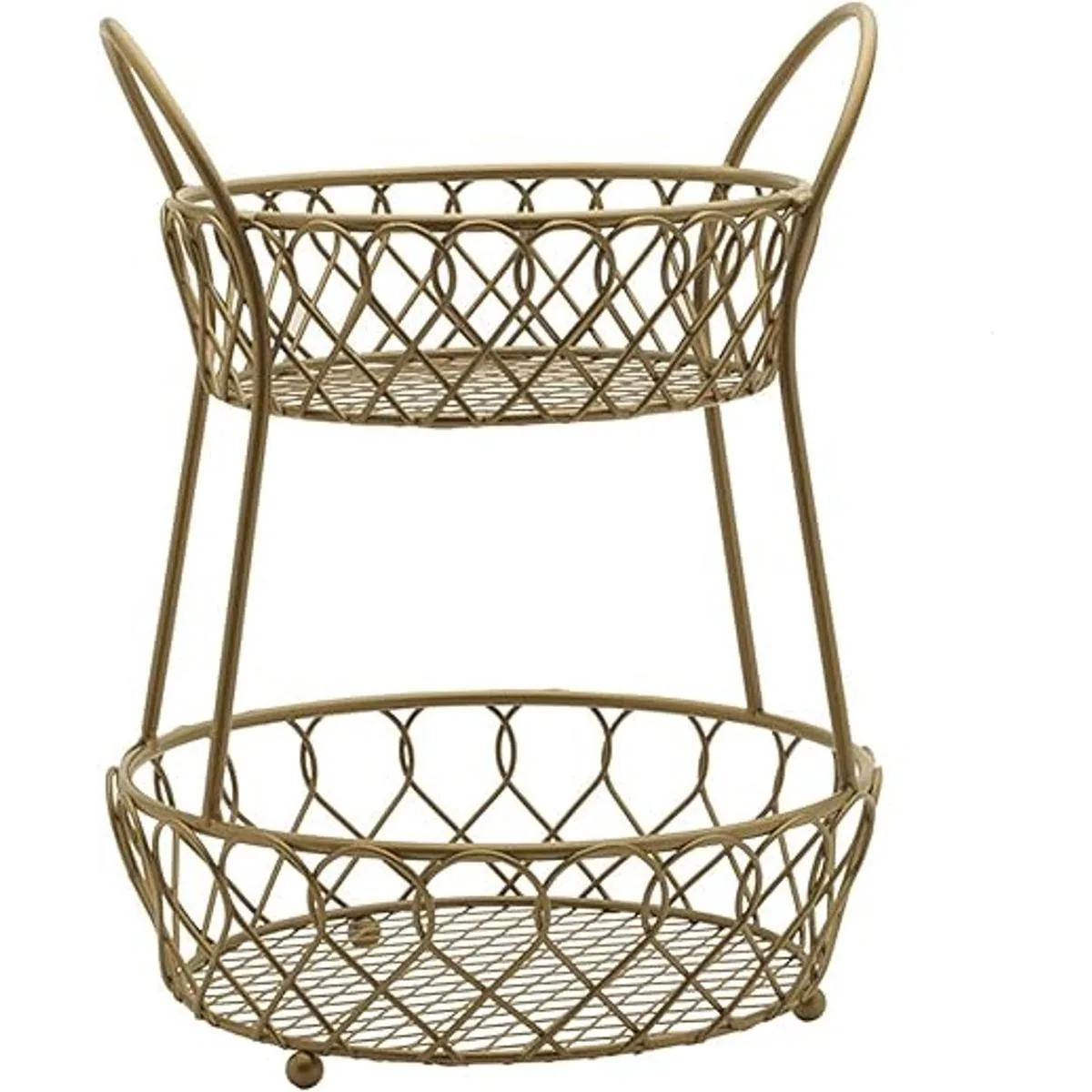 Gourmet Basics by Mikasa Loop and Lattice Cesta redonda de almacenamiento de frutas de 2 niveles, color dorado mate