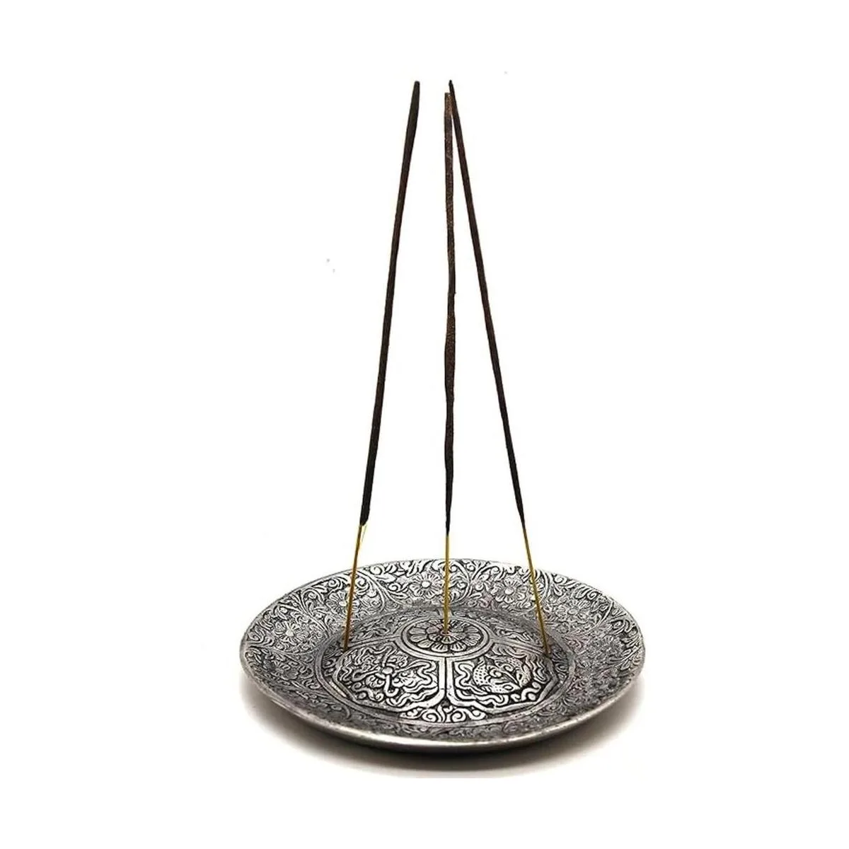 Intricadamente detallado quemador de incienso de aluminio pesado.
