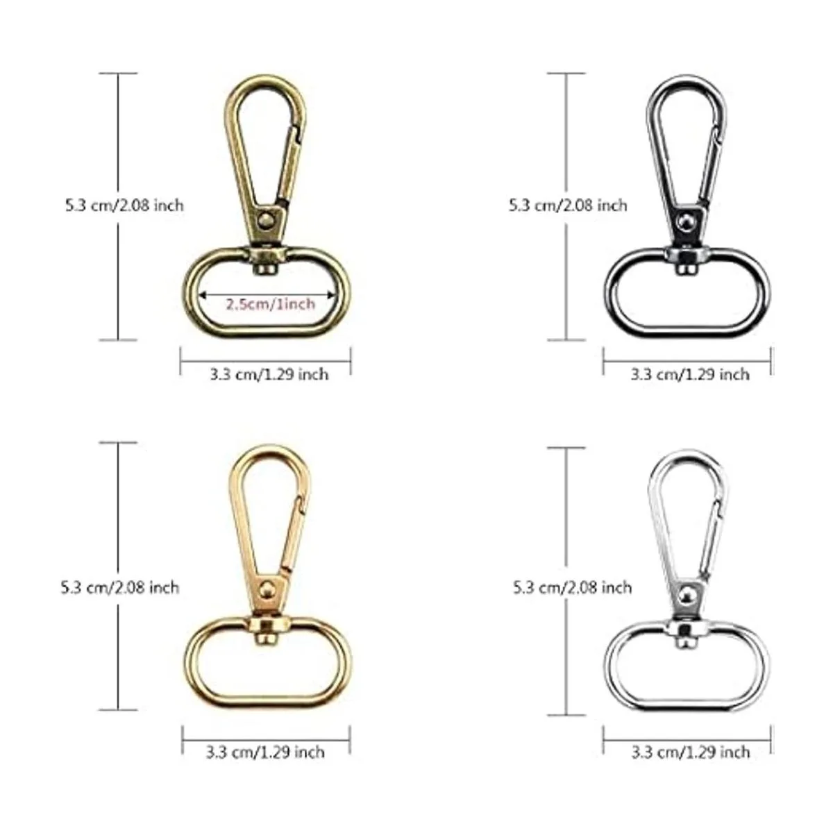 Ganchos giratorios de 1 pulgada para flexibilidad del bolso: el gancho de puerta de empuje con un cierre de mosquetón giratorio de 360 grados para un uso fácil y puedes girarlo en cualquier dirección. El gancho giratorio para puerta de empuje combinado con anillo ovalado o anillo deslizante es muy útil para una cola de hilo. Una combinación necesaria para cordón de clip de bricolaje, ganchos de llavero y joyería de moda, etc.