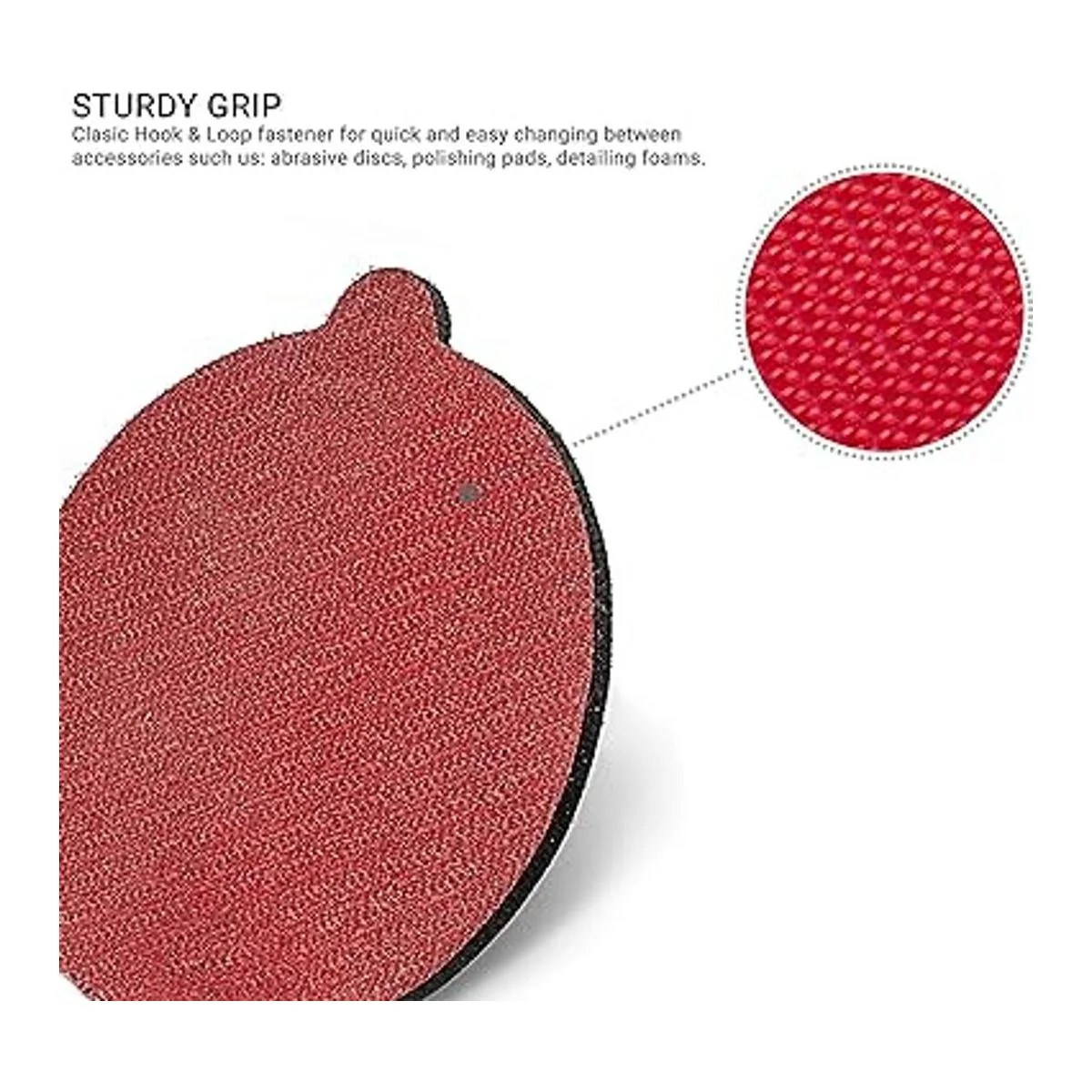 Cierre de gancho y bucle para un uso fácil con discos abrasivos, hojas de lija, almohadillas de pulido y espumas.