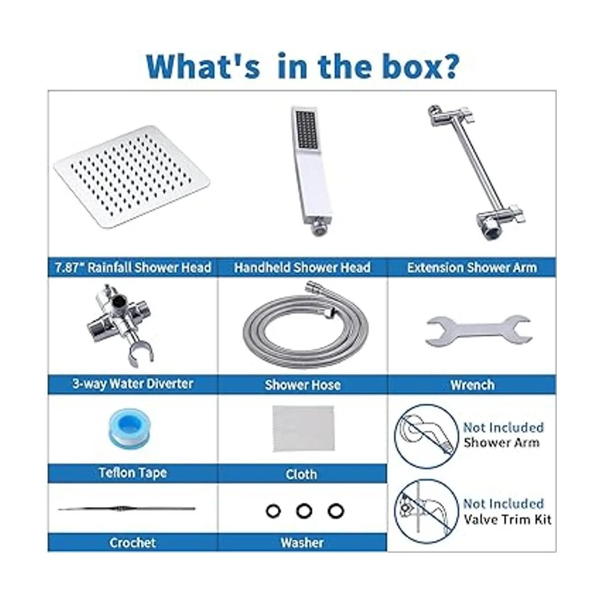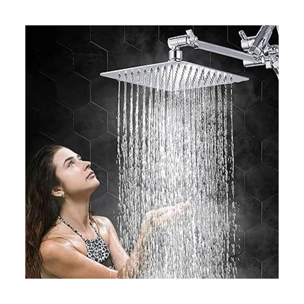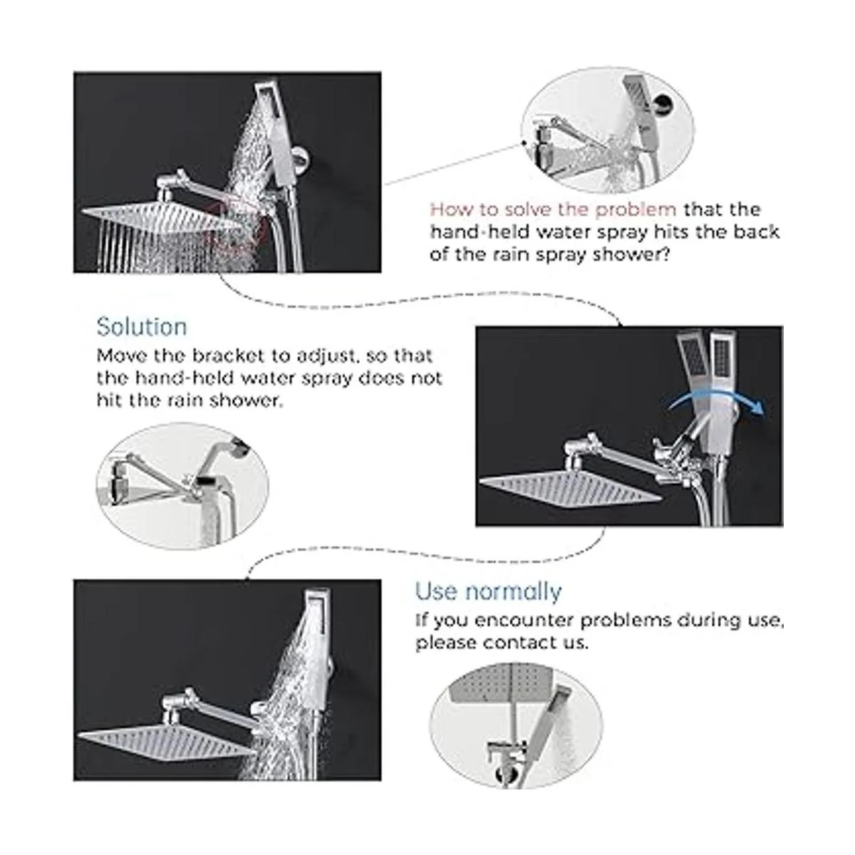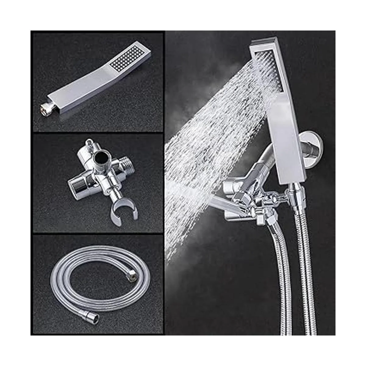 Cabezal de ducha de lluvia de metal y varita de ducha de mano: el cabezal de ducha de lluvia de diseño cuadrado y la varita de ducha de mano están hechos de acero inoxidable y latón. La construcción de metal es más duradera que el plástico y proporciona una vida útil más larga.