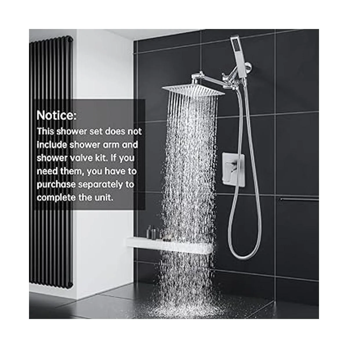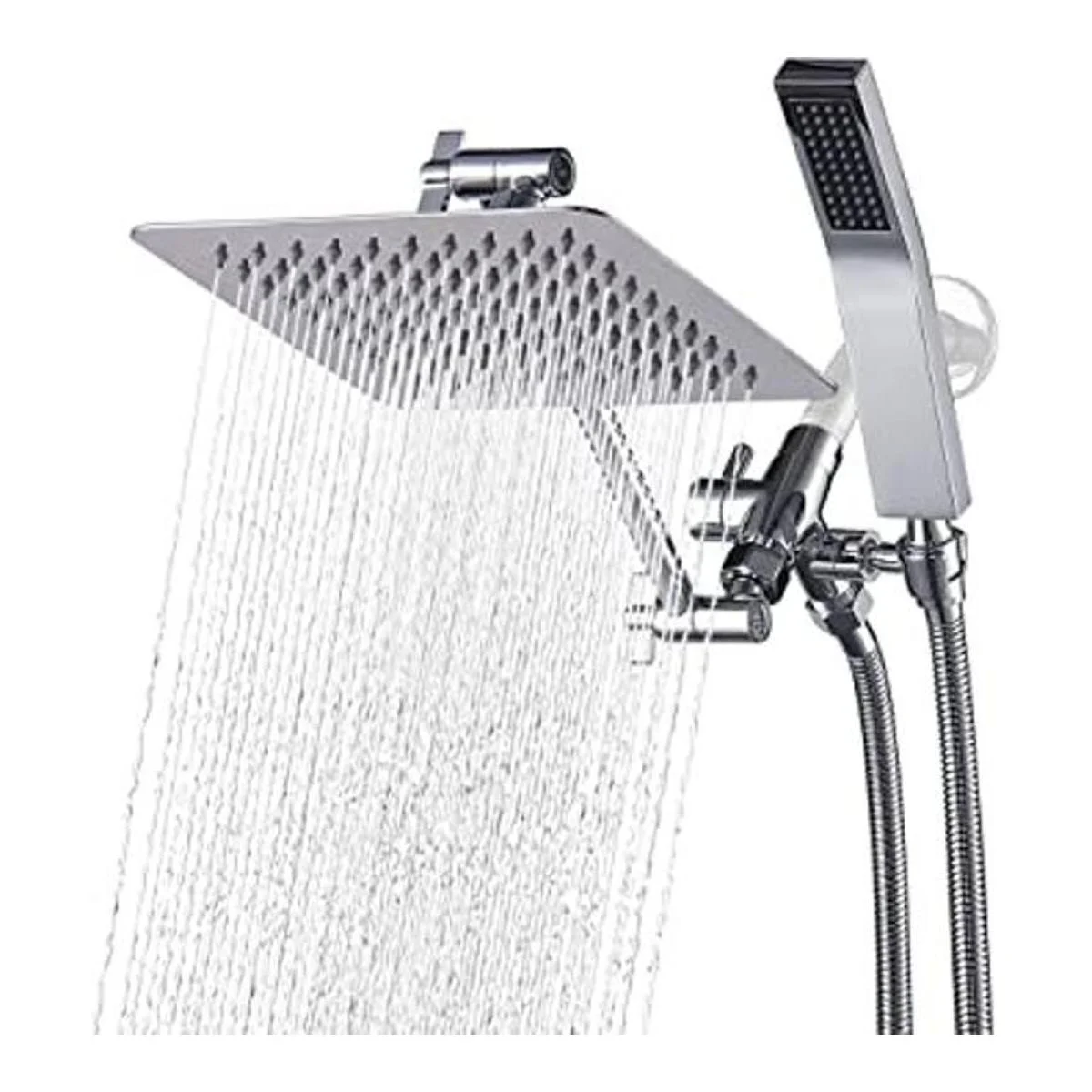 GPromise Combo de cabezal de ducha cuadrado doble de metal Cabezal de ducha de lluvia de 8 pulgadas Varita de ducha de mano con manguera flexible extra larga de 71 pulgadas desviador suave de 3 vías Brazo de extensión ajustable Una actualización de baño