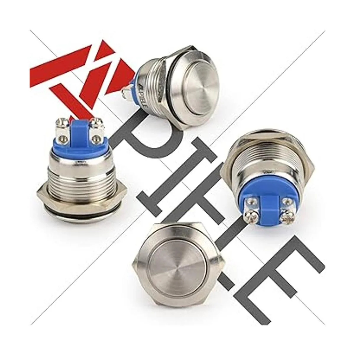 Brand New Silver Stainless Steel High Round Pushbutton Switch; Voltage: 250V, 5A. Hole size required: 0.74/19mm