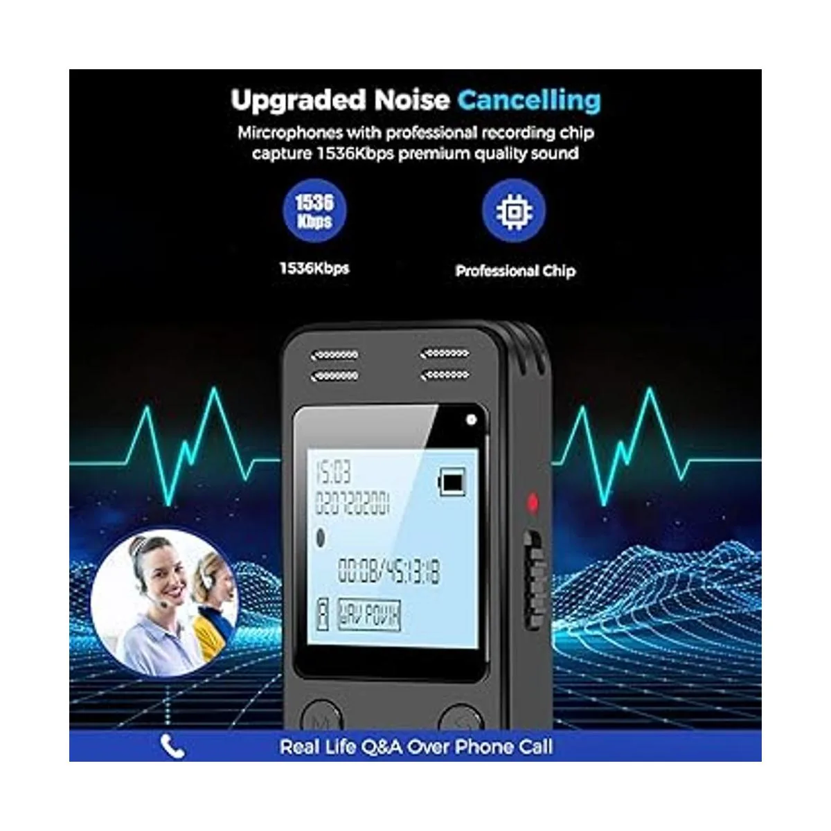Grabación PCM clara: Adopta micrófonos de cancelación de ruido dual actualizados con chip de grabación profesional. Captura 1536 Kbps sonido de calidad premium. Grabadora de voz con función de reproducción, que está bien diseñada para que los usuarios puedan acceder fácilmente.
