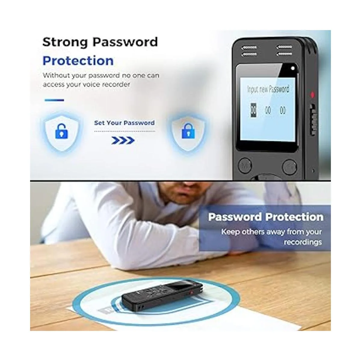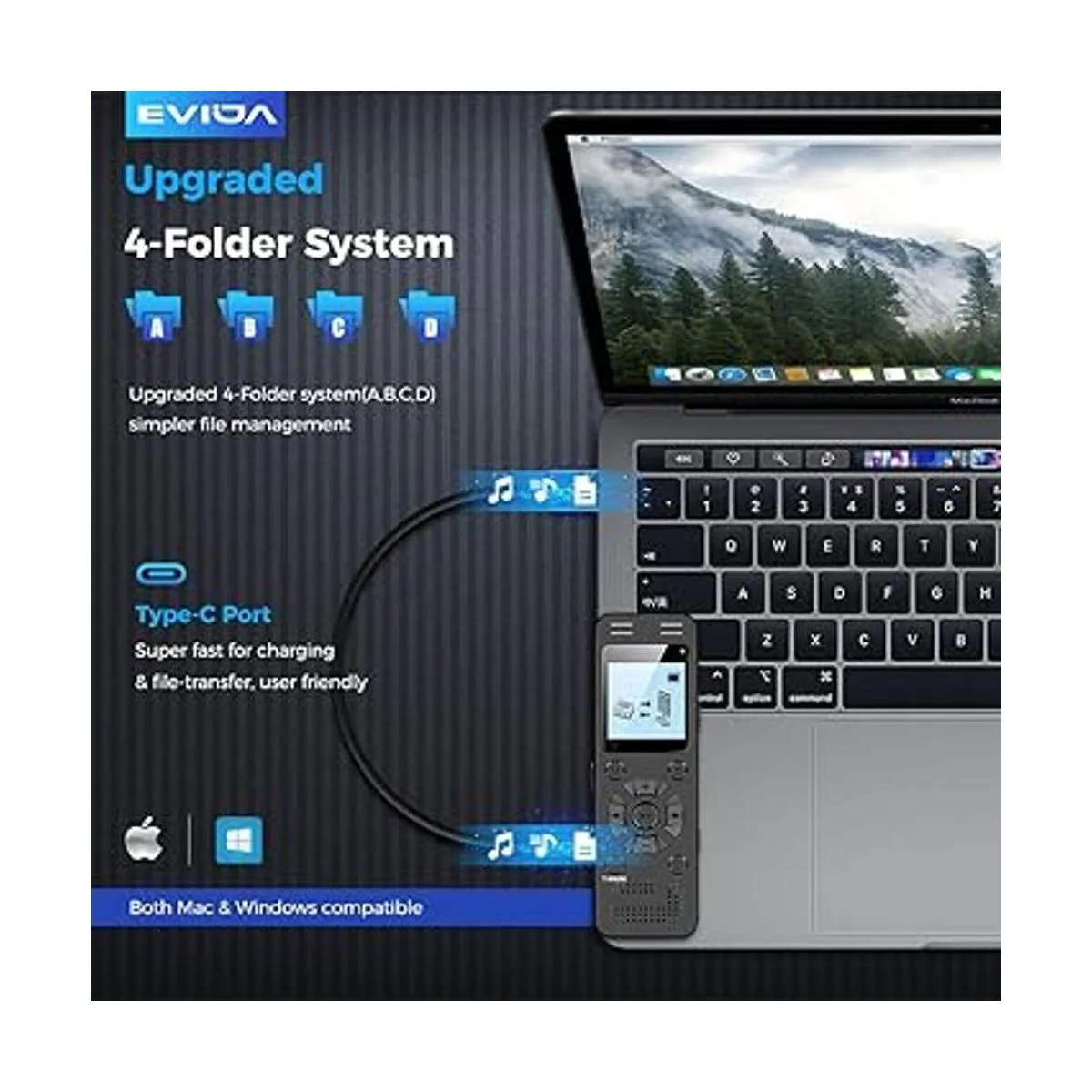 Potente función: Multiuso como una grabadora de voz, una unidad flash USB y un reproductor de MP3. Almacenamiento de 4 carpetas A/B/C/D para la gestión de archivos que hacen que tu grabación y otros archivos estén más organizados. Muchas otras características útiles como protección de contraseña, repetición AB, grabación automática, marca páginas, detección de batería inteligente.