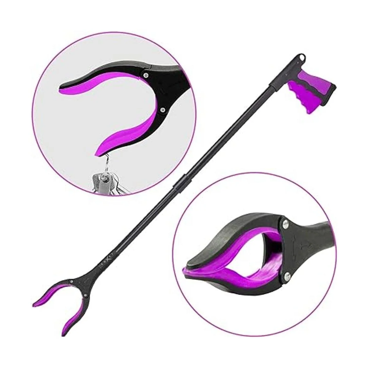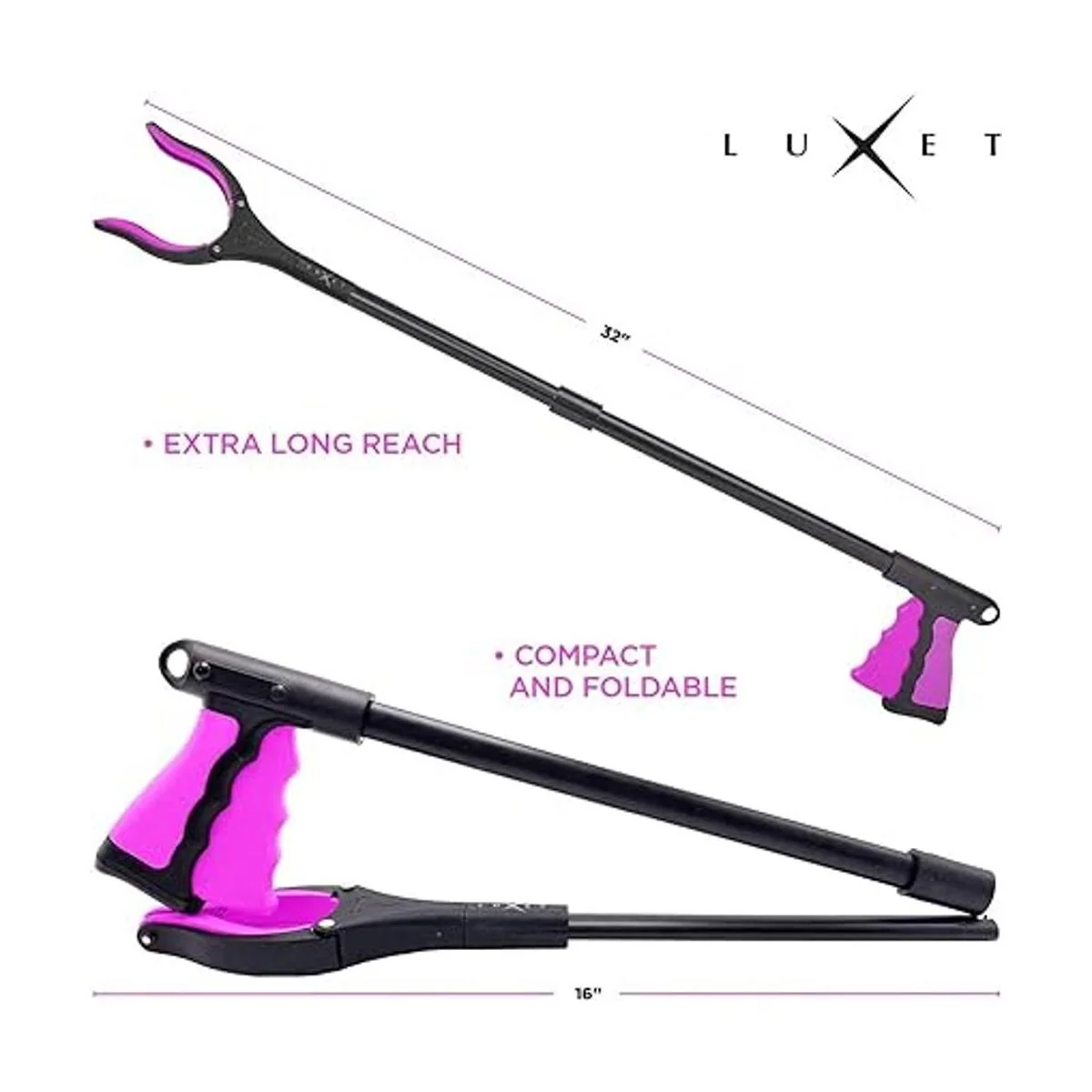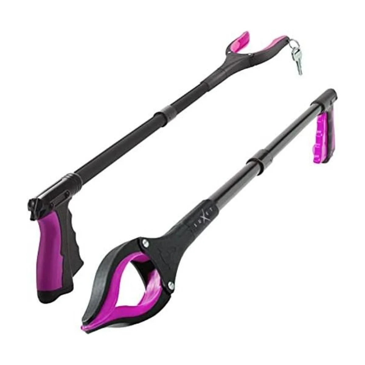 Grabber Juego de 2 unidades, versión más reciente de 32 pulgadas, plegable, punta magnética de agarre fuerte, ligera, herramienta de agarre para personas mayores rosa