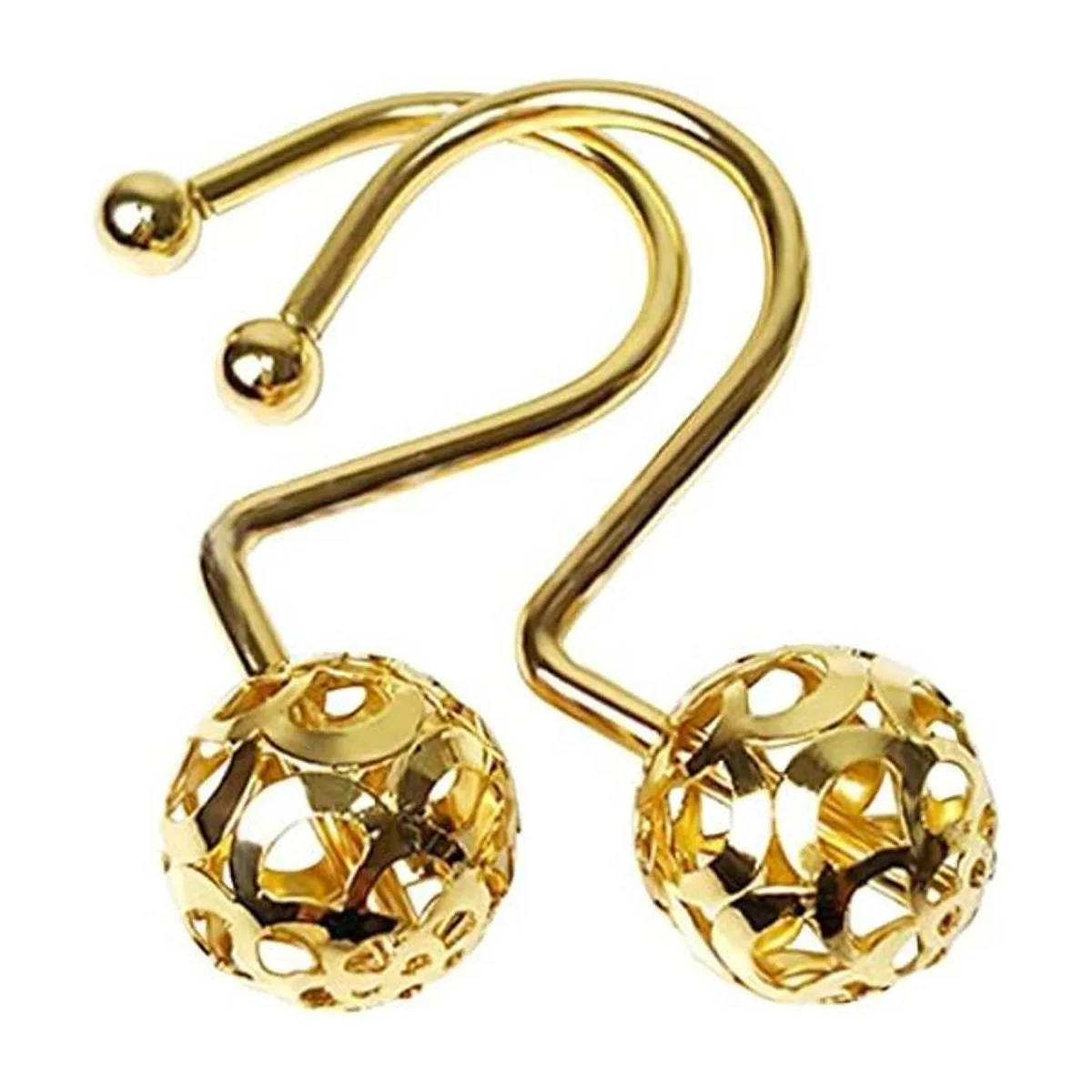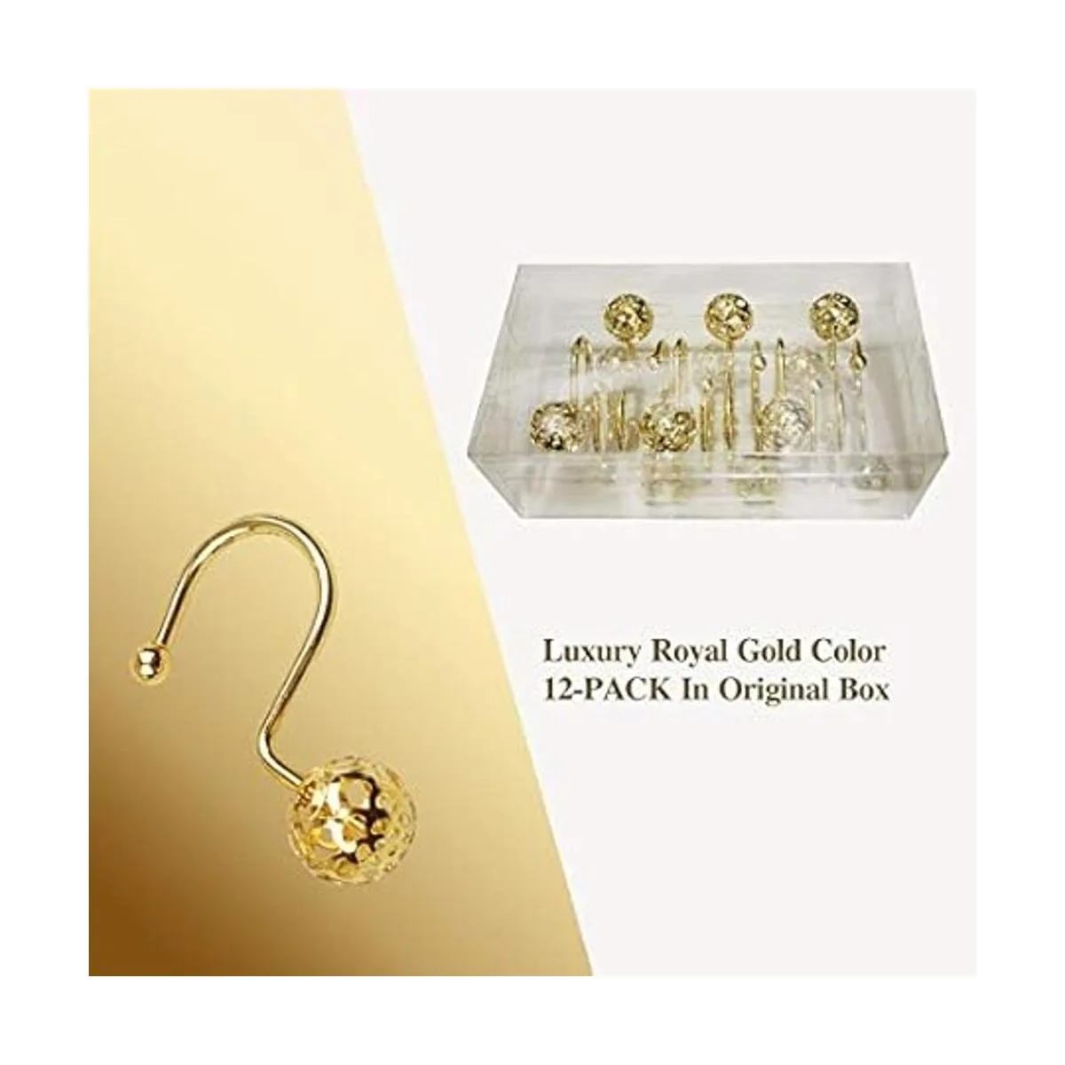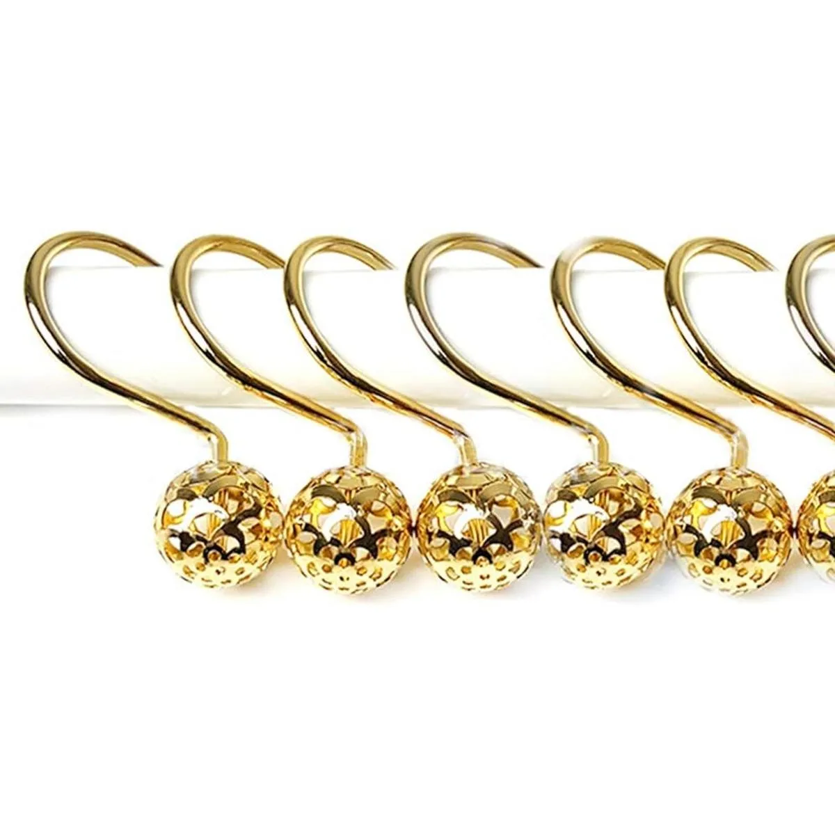 Gracelife 12 ganchos de cortina de ducha de bola hueca de lujo, de acero inoxidable, resistentes al óxido, ganchos para cortina de ducha para barra de baño dorado